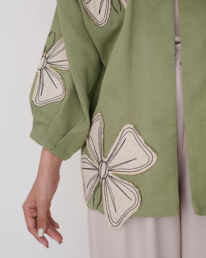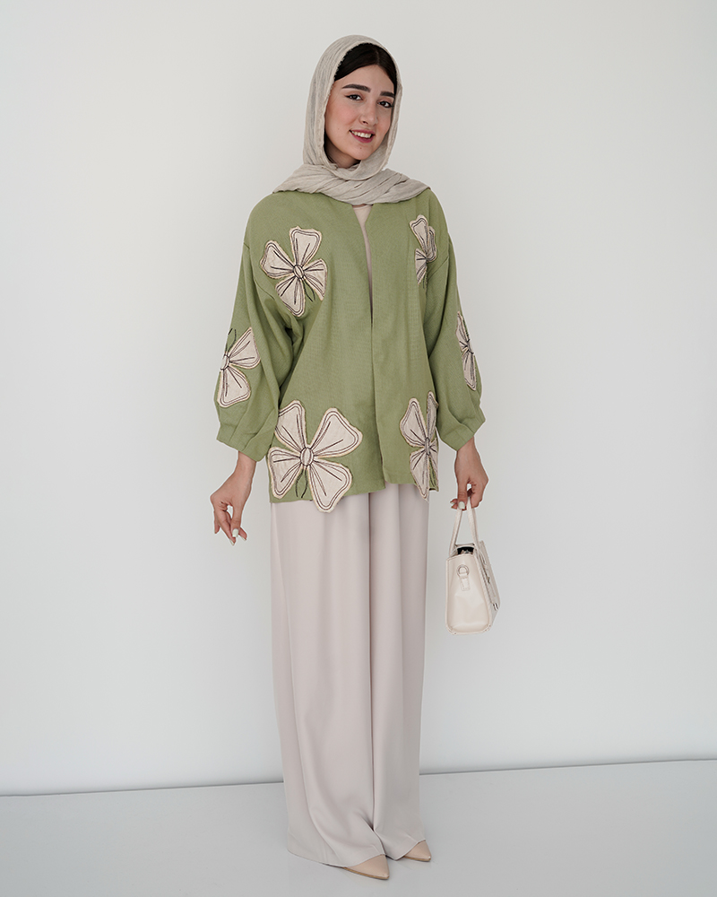 - توضیحات محصول: جنس کت کنفی می باشد. کت یقه گرد بوده و جلو باز می باشد. طرح های روی کت دوخت می باشد. این محصول بسیار خنک و راحت مناسب استفاده روزانه است. میزان آبرفت از طریق جدول راهنمای سایز قابل مشاهده است.