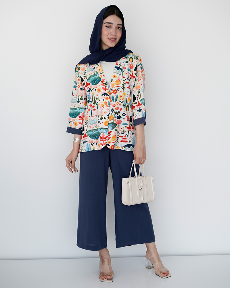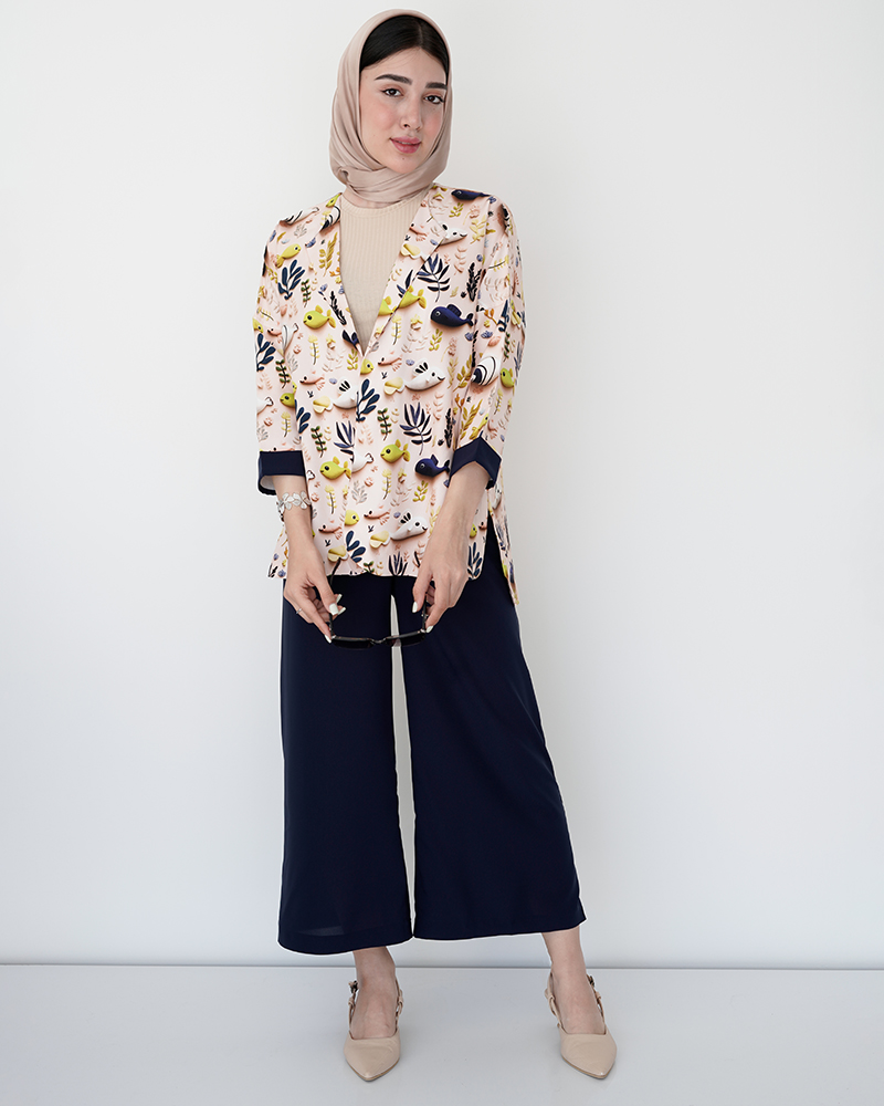 - توضیحات محصول: جنس ست کرپ می باشد. کت جلو باز ،یقه انگلیسی و آستین بلند می باشد. کمر شلوار این ست پشت کشی بوده و جیب های شلوار کاربردی هستند.