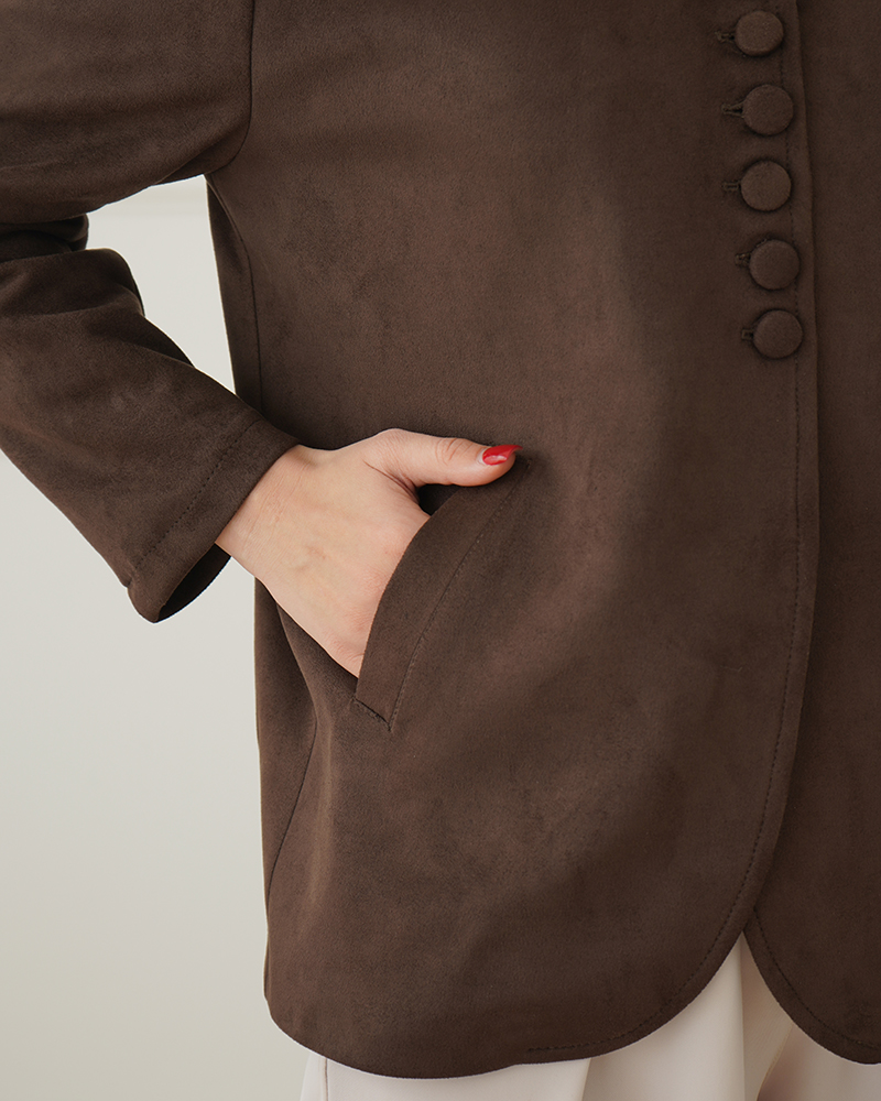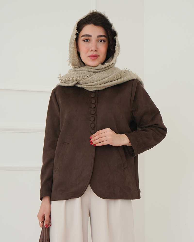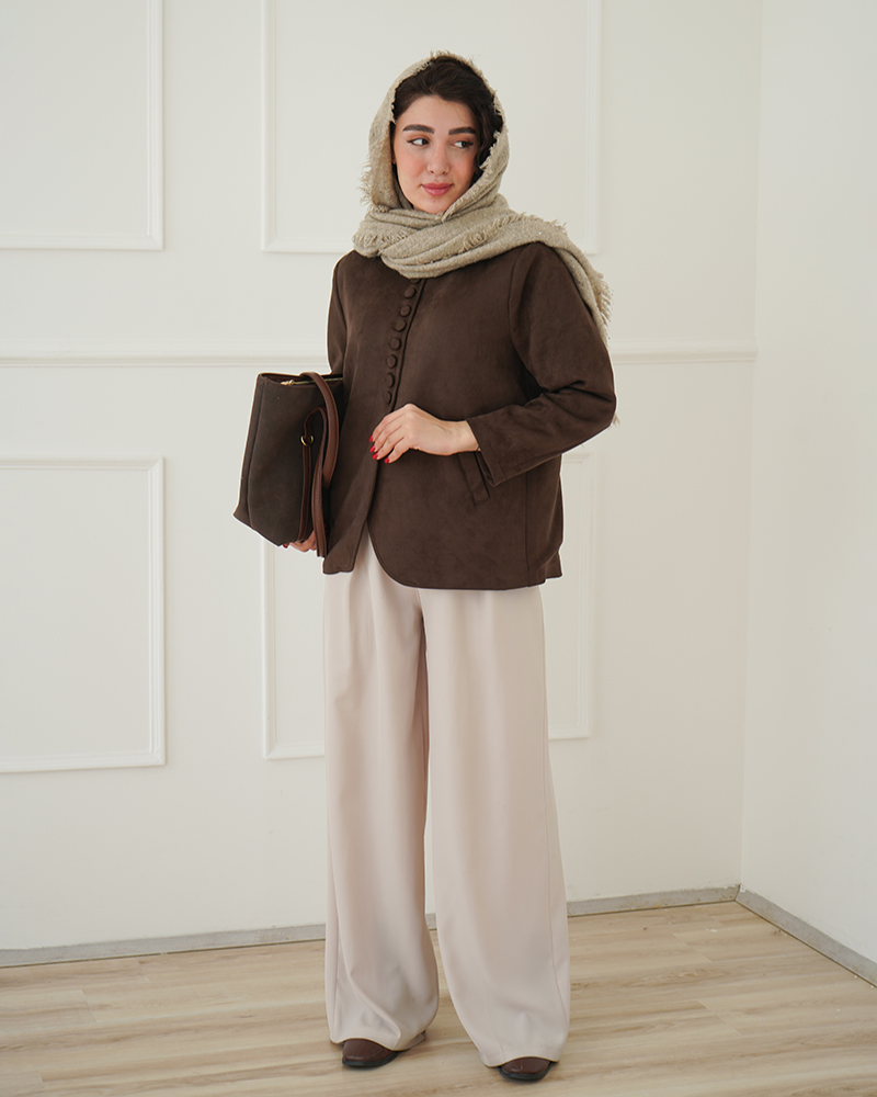 - توضیحات محصول: جنس کت سوئیت می باشد. کت یقه گرد و آستین بلند می باشد. دکمه های قسمت جلوی لباس کاربردی می باشد. کت آستر دار و دارای جیب های کاربردی است.