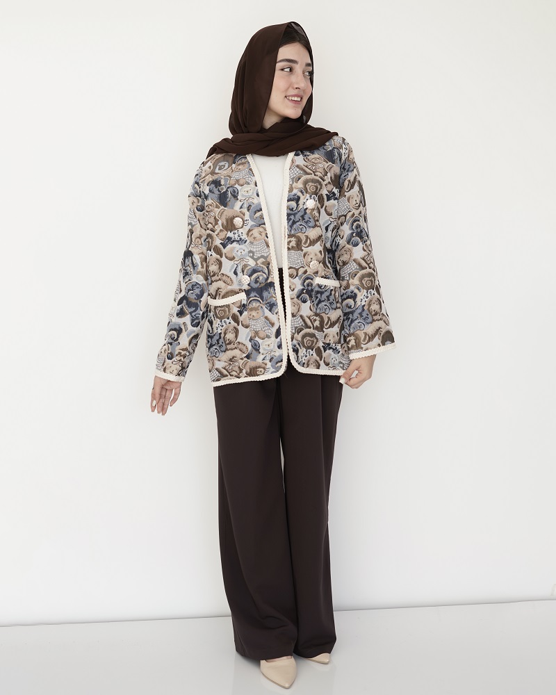 - توضیحات محصول: جنس کت، ژاکارد است. دکمه ها، نما و جیب های کت، کاربردی هستند. جلوی کت، برای ایستایی بهتر، آسترکشی شده است.