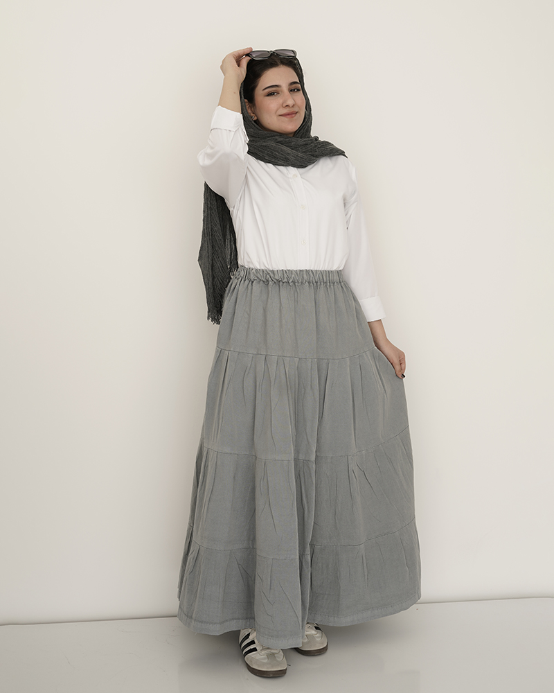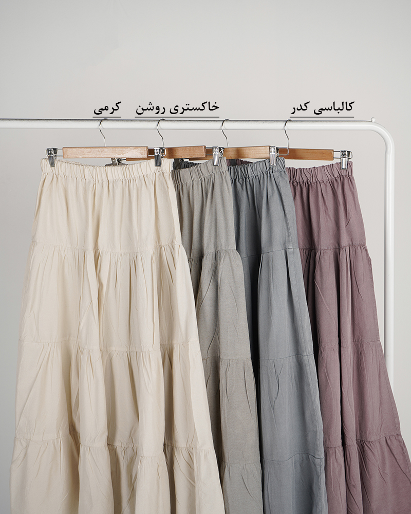 - توضیحات محصول: جنس دامن، تترون پلی استر می باشد. کمر دامن کشی و دامن چین دار و بسیار خنک می باشد. پارچه محصول شسته شده و بدون آبرفت می باشد.
