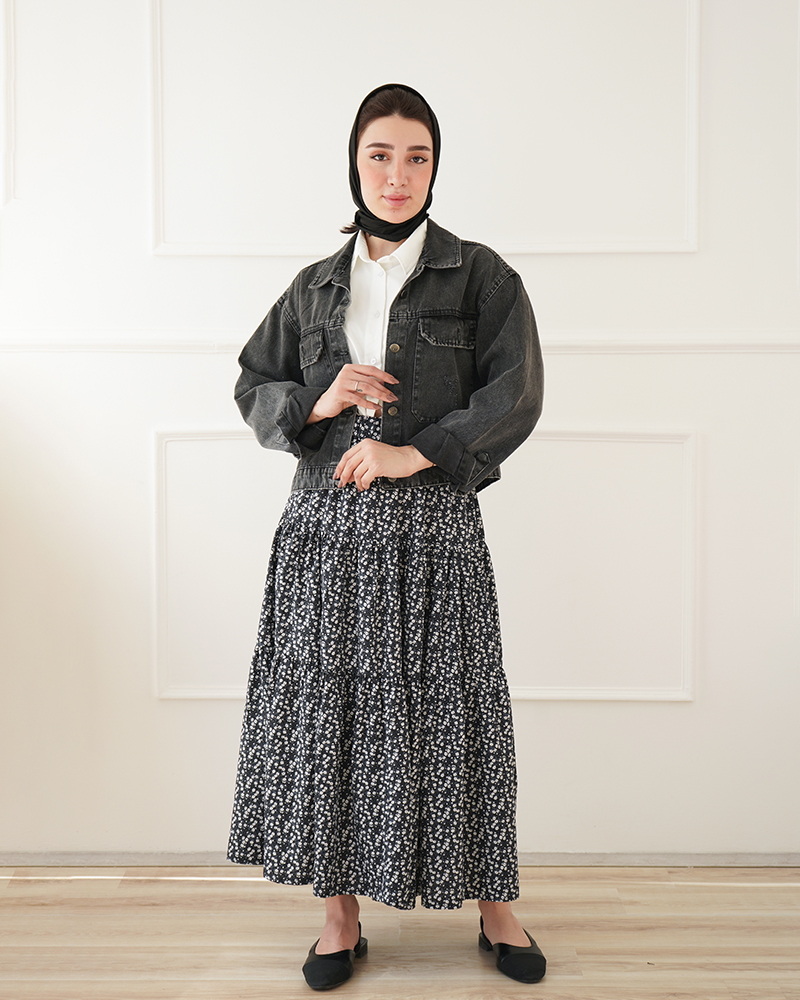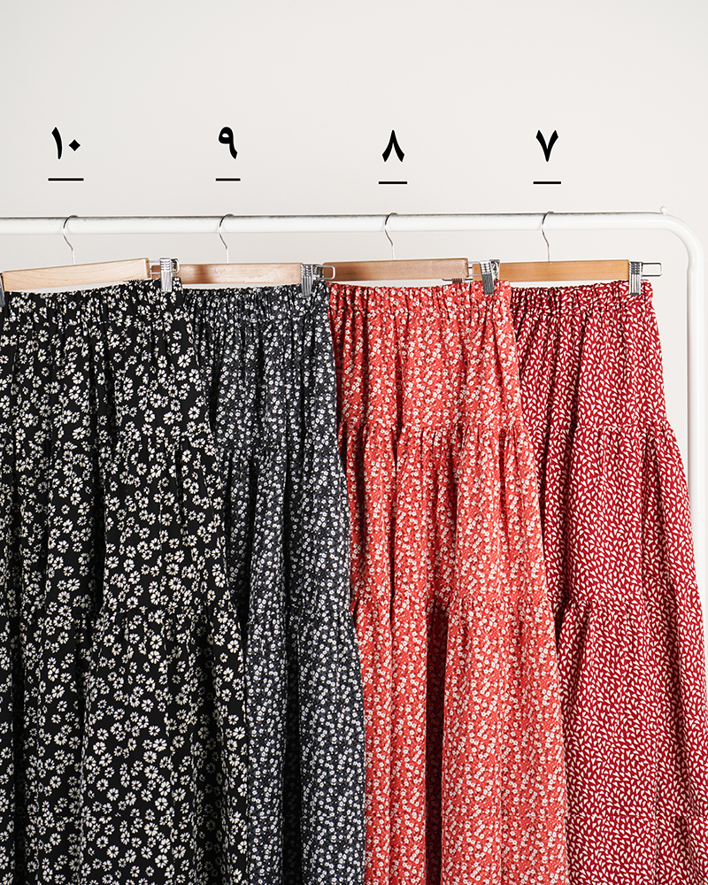 - توضیحات محصول: جنس دامن کرپ می باشد. دور کمر دامن تماما کشی می باشد. دامن طبقه ای و چین دار است. این محصول بدن نما نمی باشد.