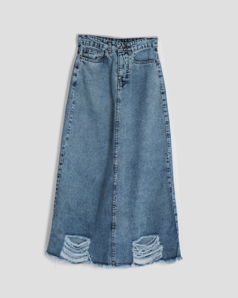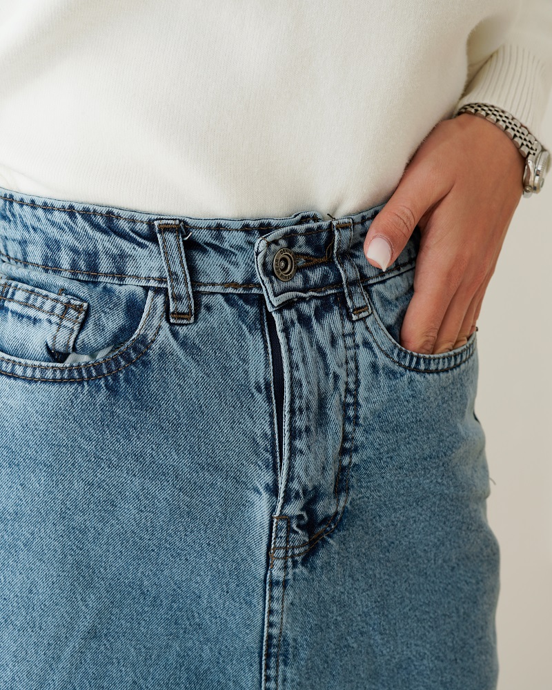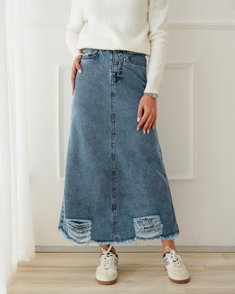 - توضیحات محصول: جنس دامن جین می باشد. کمر دامن دکمه ای و زیپی است. دامن فاقد کشسانی می باشد.