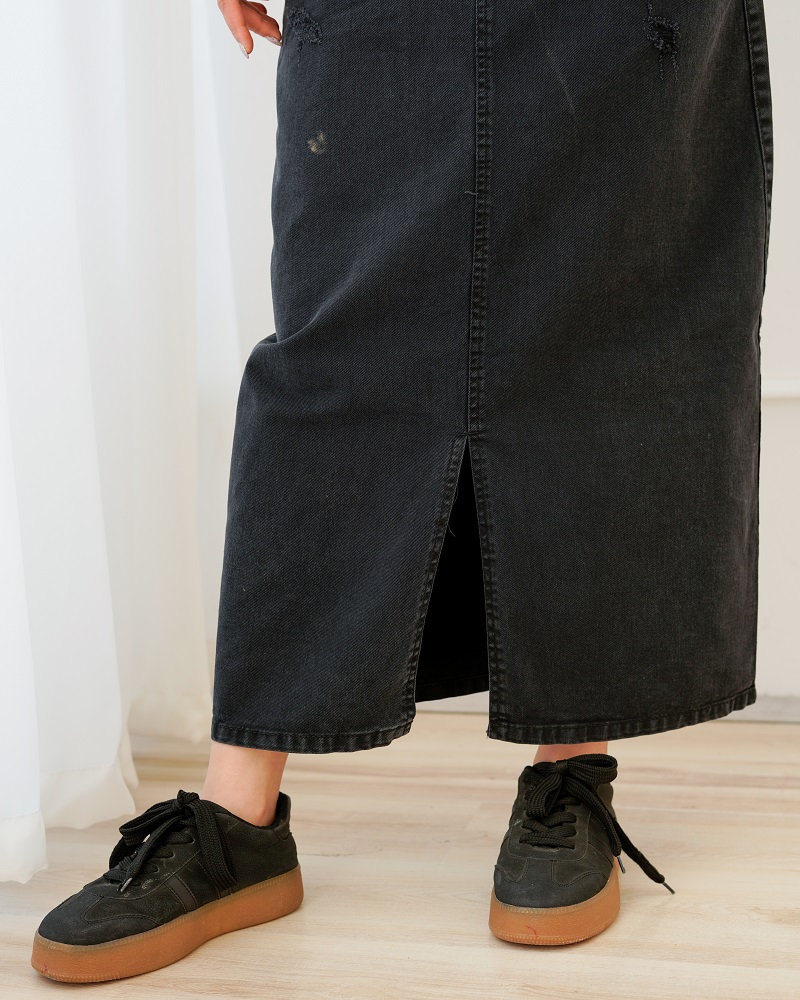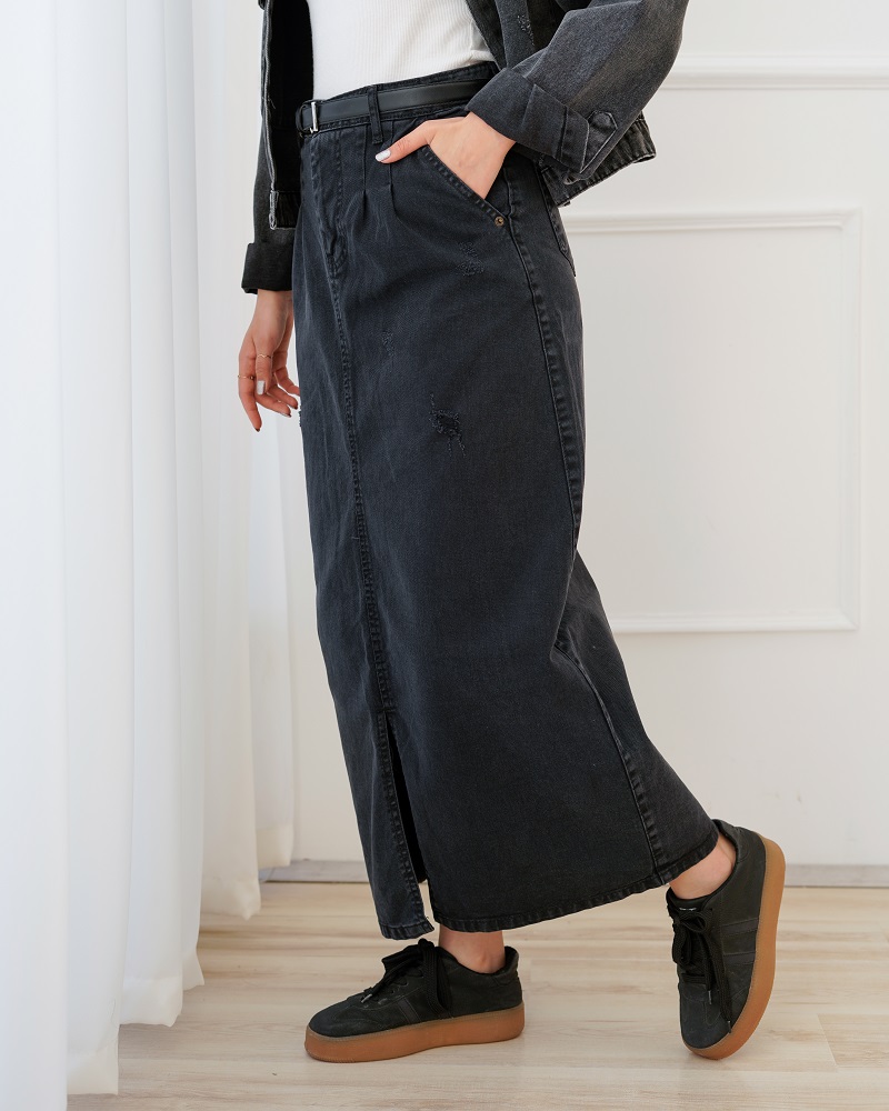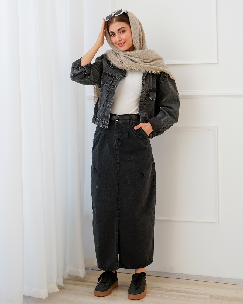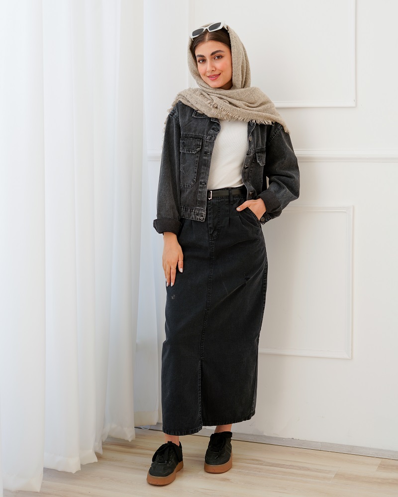 - توضیحات محصول: جنس دامن جین می باشد. کمر دامن دکمه ای و زیپی است. دامن فاقد کشسانی می باشد.