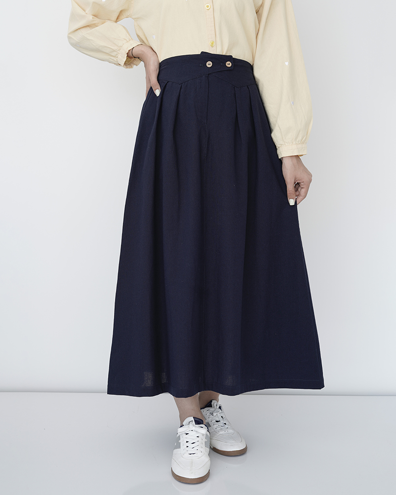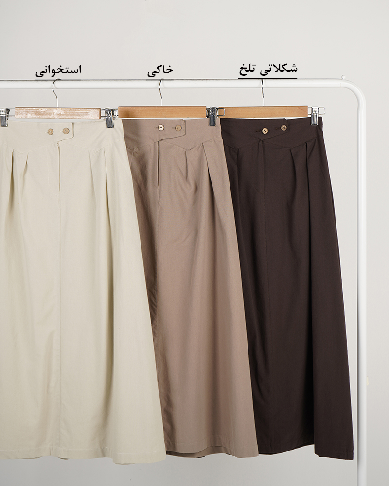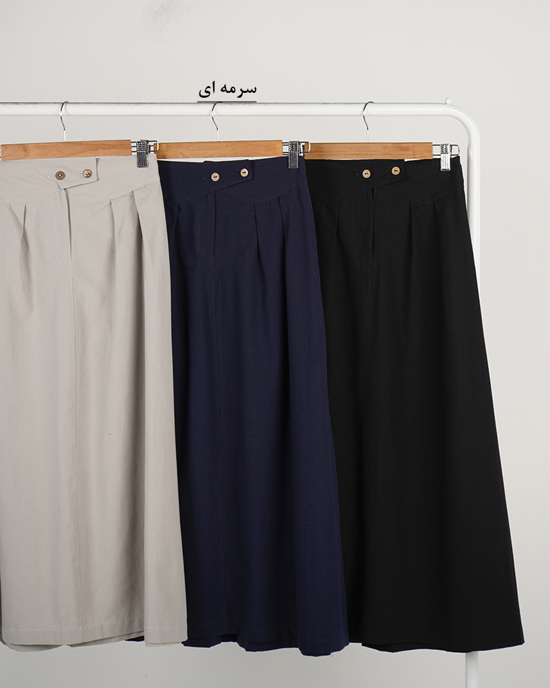 - توضیحات محصول: جنس دامن لینن کتان می باشد. کمر دامن پشت کشی و جیب های دامن نما هستند. دامن بسیار خوش دوخت و شیک مناسب استفاده روزمره می باشد. میزان آبرفت از طریق جدول راهنمای سایز قابل مشاهده است.