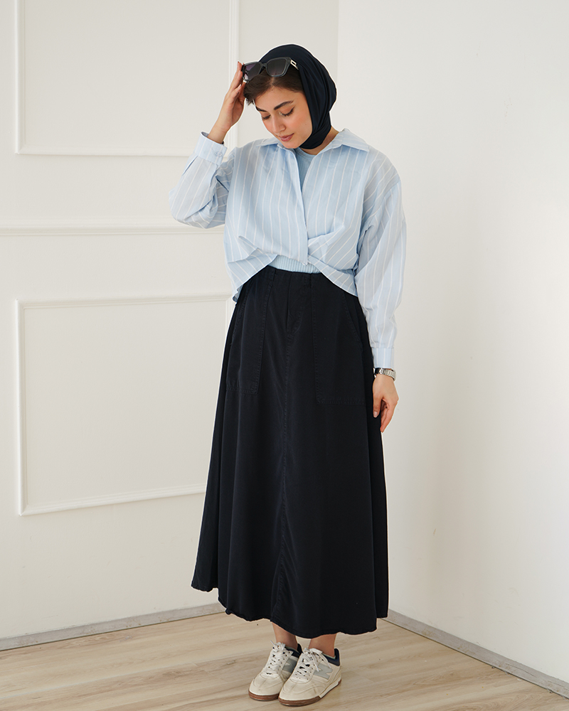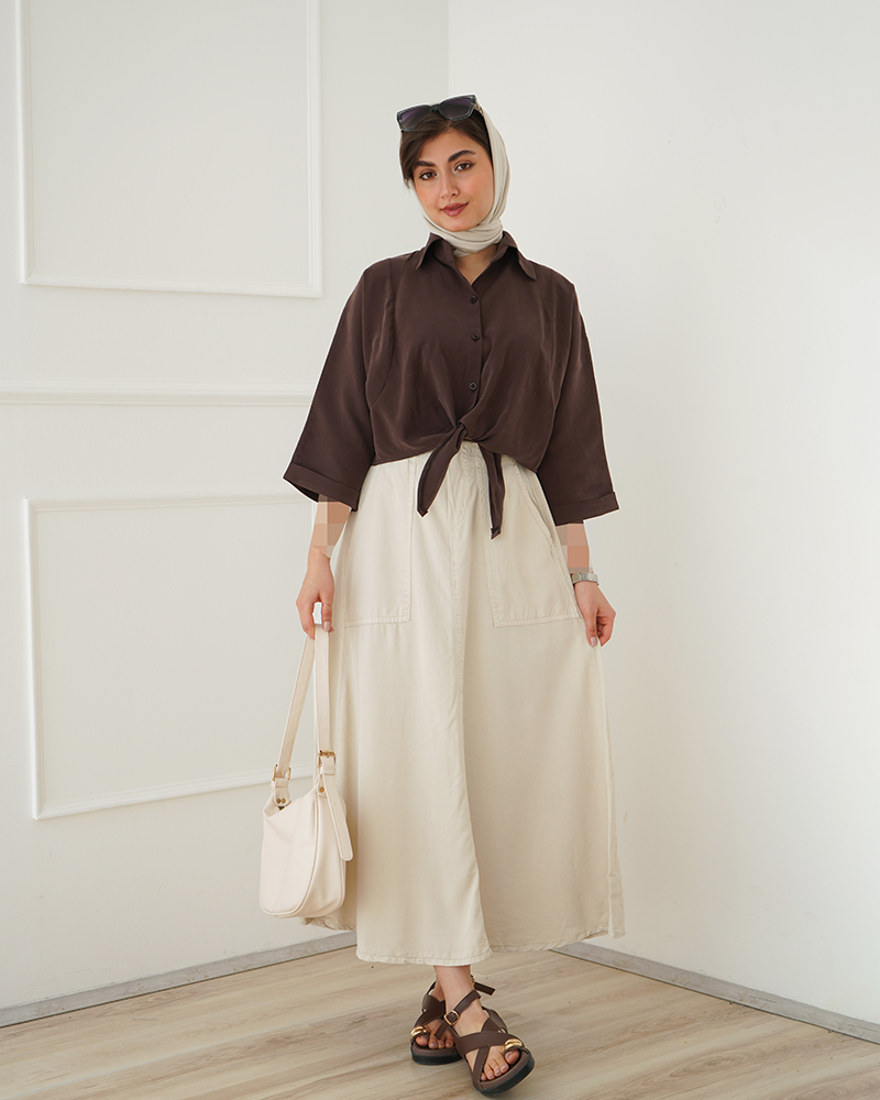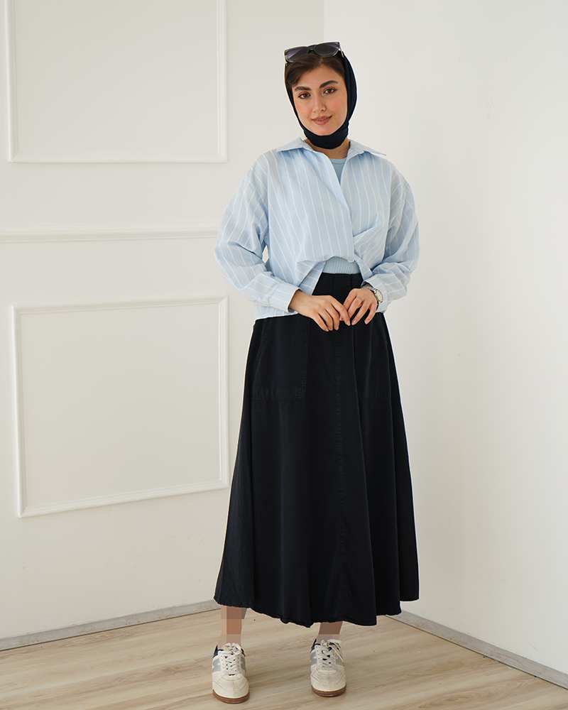 - توضیحات محصول: جنس دامن کتان سیلک می باشد. کمر دامن پشت کشی بوده و دارای پل کمربند می باشد. جیب های دامن کاربردی بوده و دامن چین دار می باشد. این محصول بسیار با کیفیت و از برند رویال است.