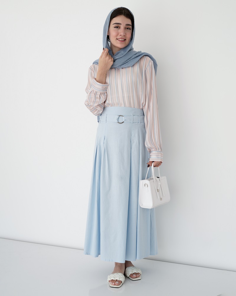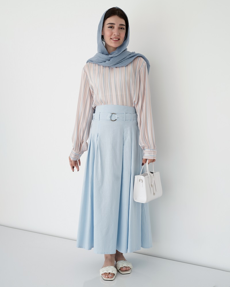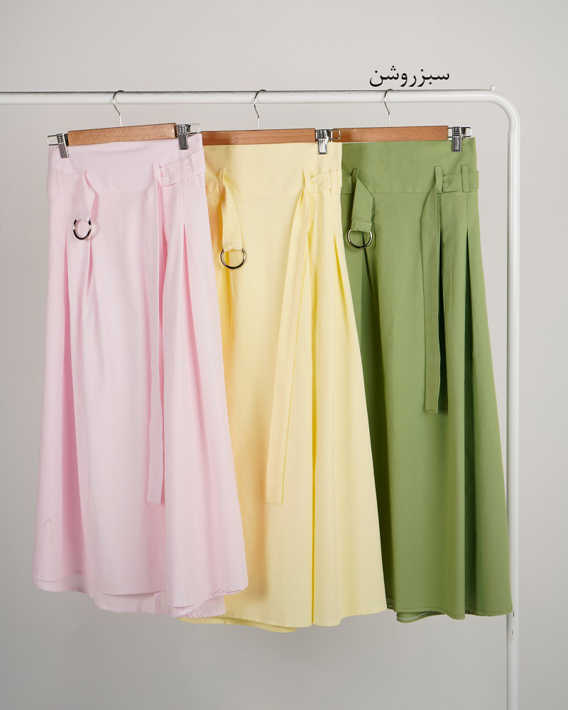 - توضیحات محصول: جنس دامن، لینن می باشد. کمر دامن، پشت کشی و دارای یک کمربند از جنس دامن می باشد. میزان آبرفت از طریق جدول راهنمای سایز قابل مشاهده است.