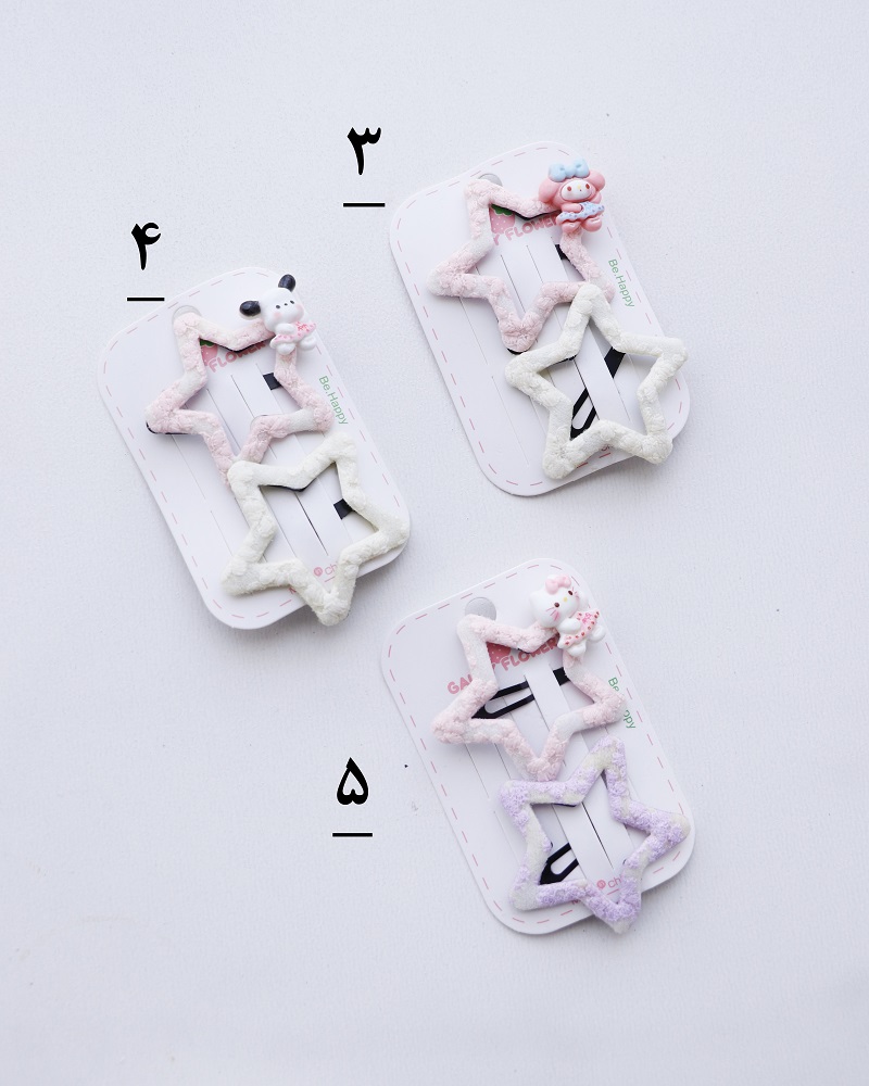 - توضیحات محصول: طرح ها بر اساس عروسک بغل گیره درنظر گرفته شده است (رنگ های گیره به صورت رندوم ارسال می شود) پک گیره دو عددی و طول گیره، 6 است.