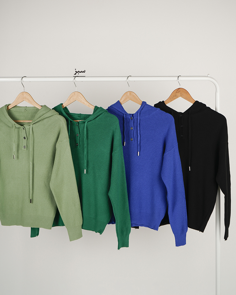 - توضیحات محصول: جنس هودی، بافت لطیف است. بند دور کلاه هودی و دکمه های یقه کاربردی می باشد. این محصول کشسانی بالایی دارد.