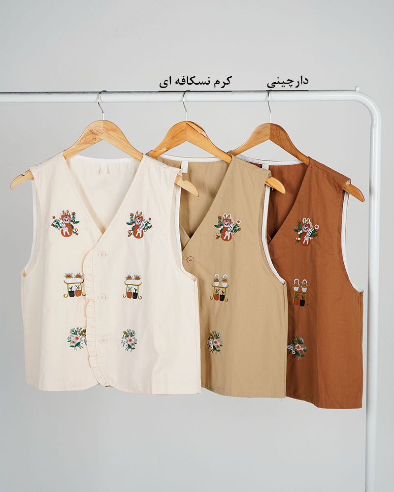 - توضیحات محصول: جنس جلیقه تترون می باشد. طرح های روی جلیقه گلدوزی شده و دکمه ها کاربردی می باشند. میزان آبرفت از طریق جدول راهنمای سایز قابل مشاهده است.