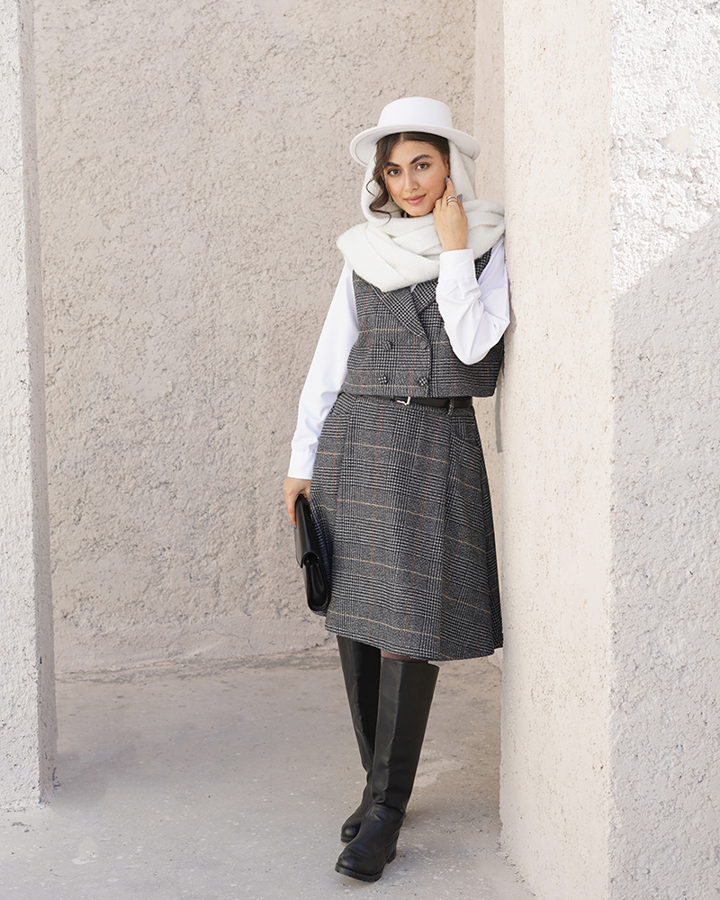 - توضیحات محصول: جنس ست پشمی می باشد. جلیقه یقه مردانه و حلقه ای می باشد. دکمه های قسمت جلوی جلیقه کاربردی می باشد. کمر دامن پشت کشی و دامن چین دار است.