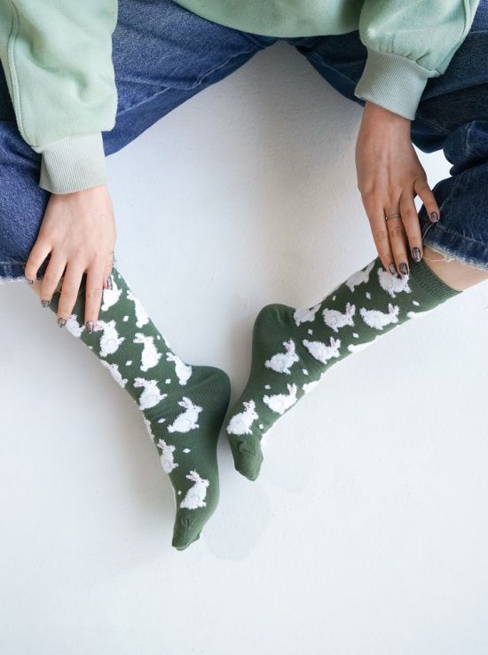 جوراب زنانه چتیک مدل خرگوش خزدارسفید | هیبا