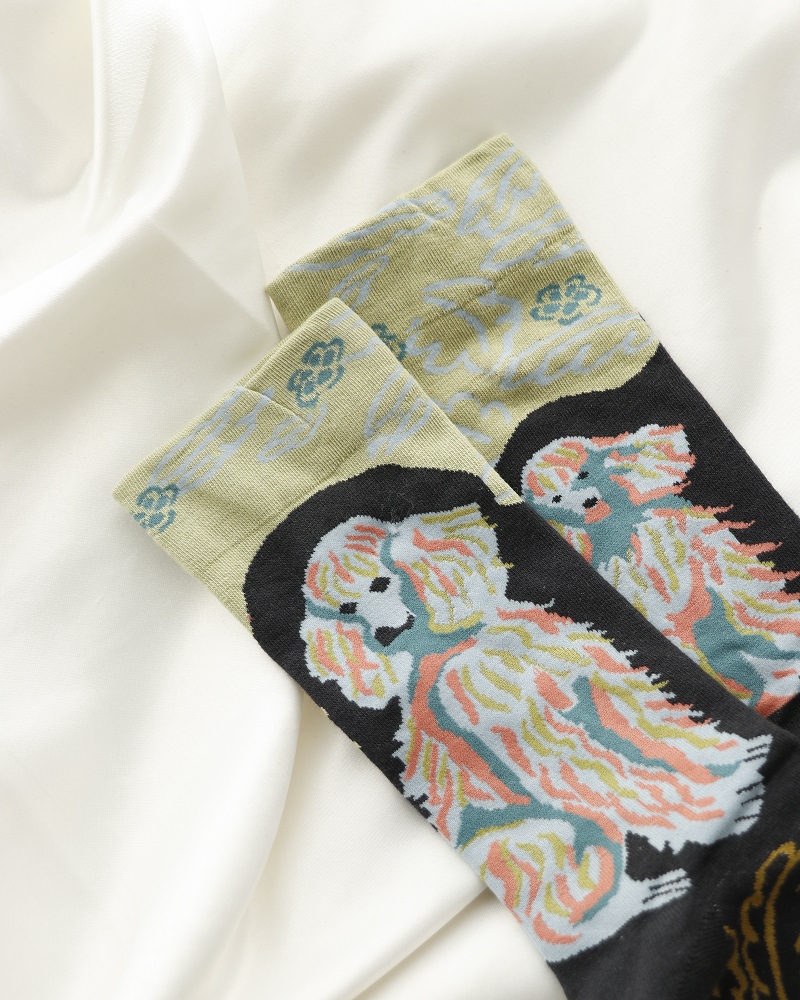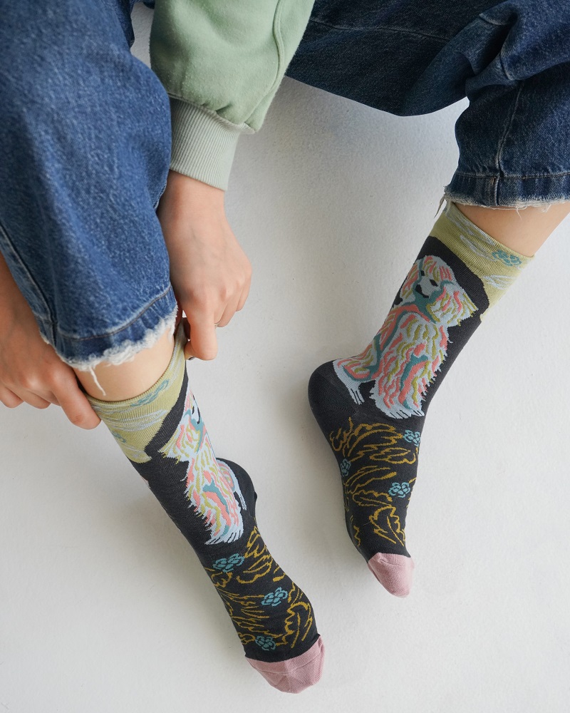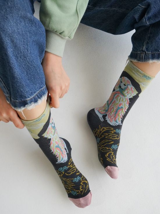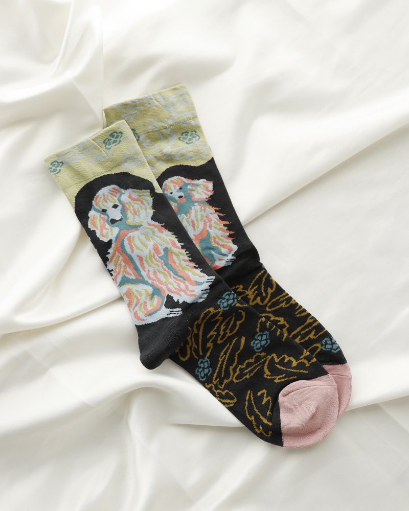 جوراب زنانه ماکسیو مدل برگ مشکی زرد