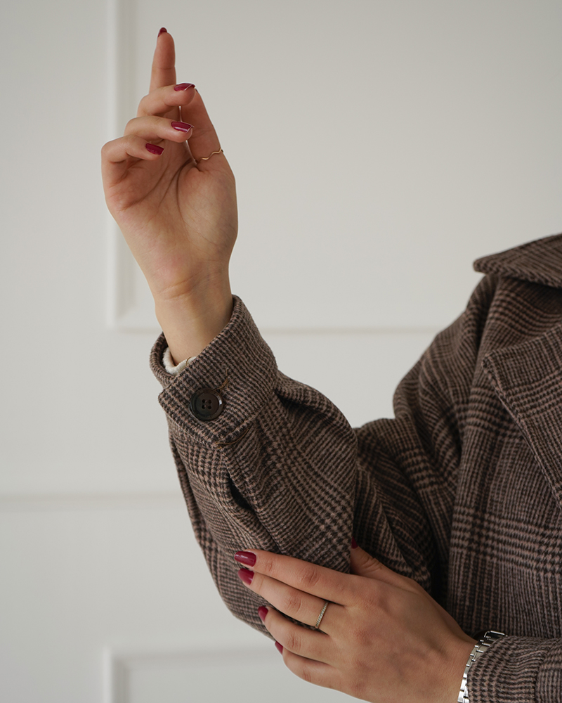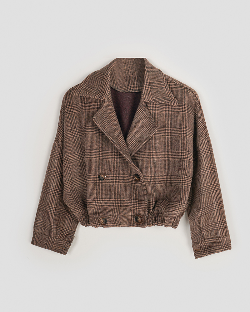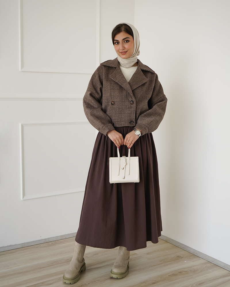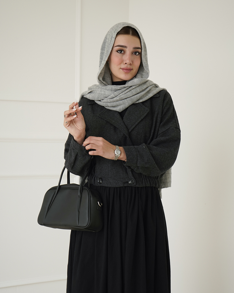 - توضیحات محصول: جنس کت کراپ، جناقی است. کت کراپ، فاقد آستر می باشد. کت کراپ یقه انگلیسی و کمر کش است.