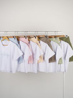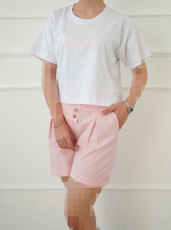 - توضیحات محصول: جنس کراپ شورتک نخ و پنبه بسیار لطیف است. کراپ یقه گرد بوده و طرح های روی کراپ چاپی هستند. کمر شورتک کشی می باشد. ست بسیار راحت و لطیف مناسب استفاده روزانه در منزل ،باشگاه و ... است.
