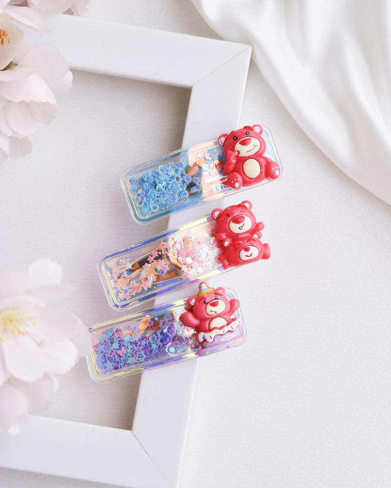 - توضیحات محصول: گیره، تکی (یک عددی) و طول گیره، 6 است. عروسک خرسی طرح یک، بصورت رندوم می باشد.