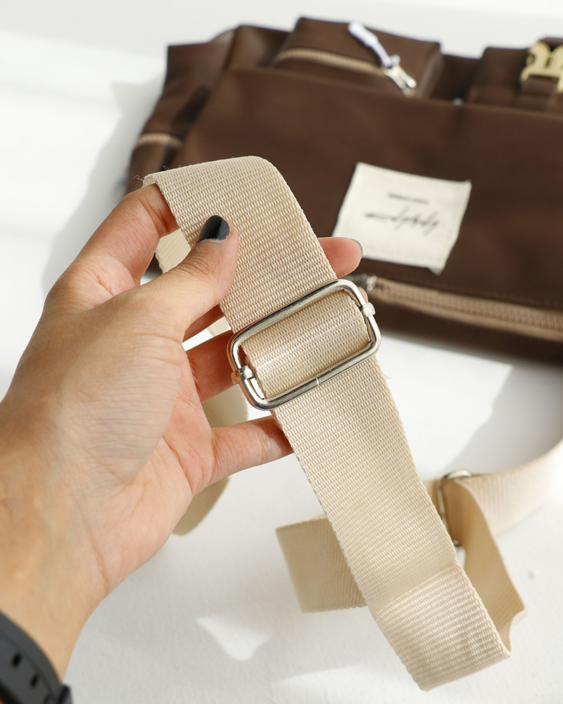 - توضیحات محصول: جنس کیف نانسی است. طول کیف 39 ،ارتفاع 24 ،پهنا 11 و قد زاب ند 36 (قابل تنظیم) می باشد.