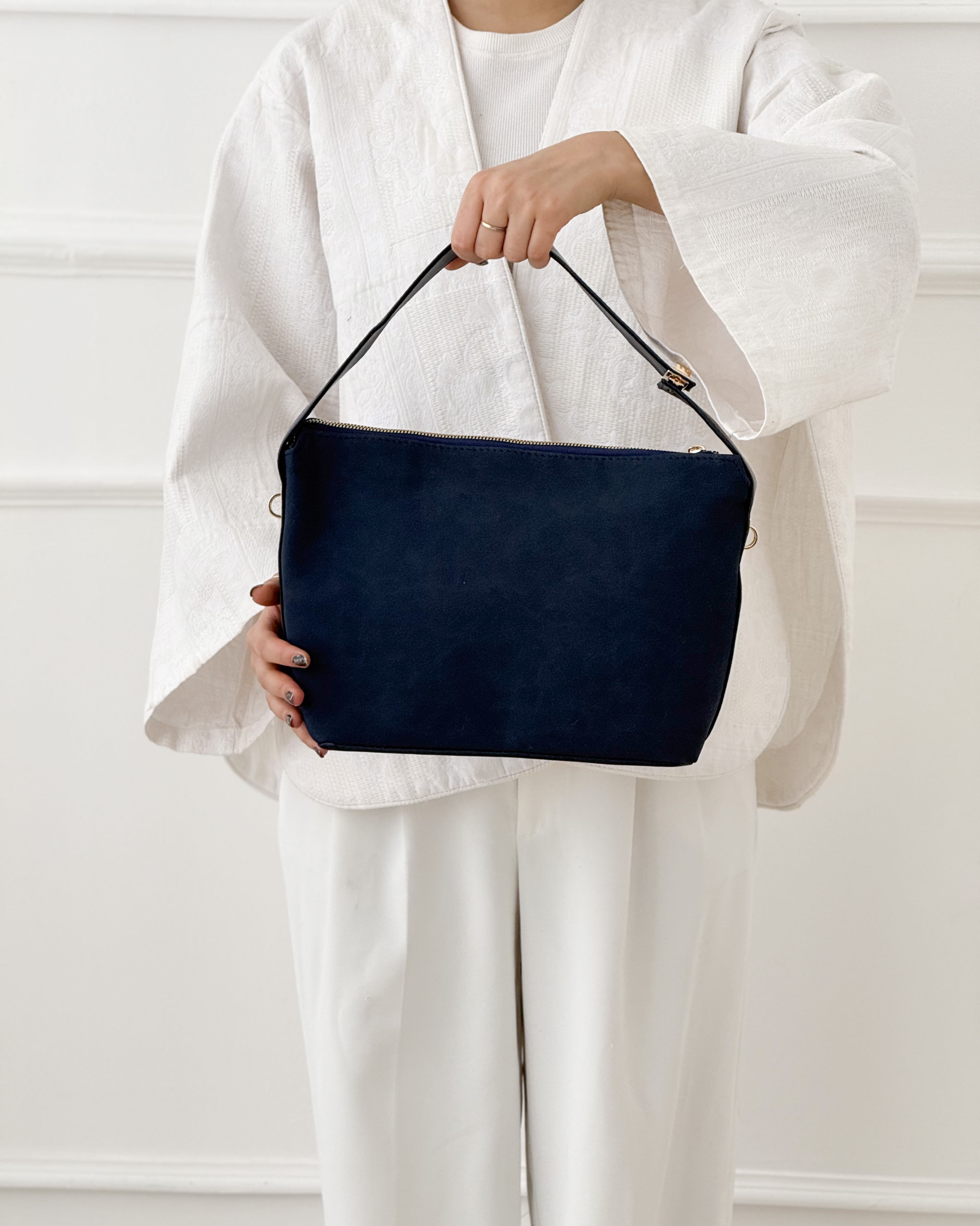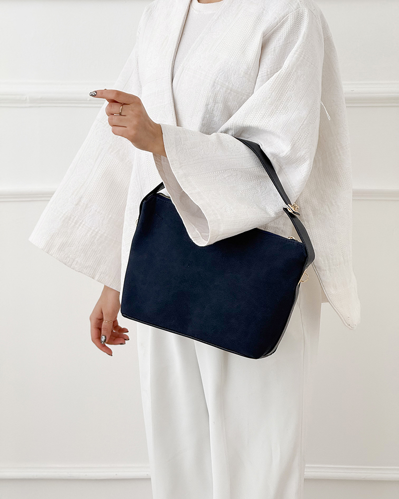 - توضیحات محصول: جنس کیف ترکیبی از جیر و چرم می باشد. طول کیف 34 ،ارتفاع 23 ،پهنا 12 و قد از بند کوتاه 12 و قد از بند بلند 61 سانتی متر است.داخل کیف دارای یک جیب مخفی می باشد.