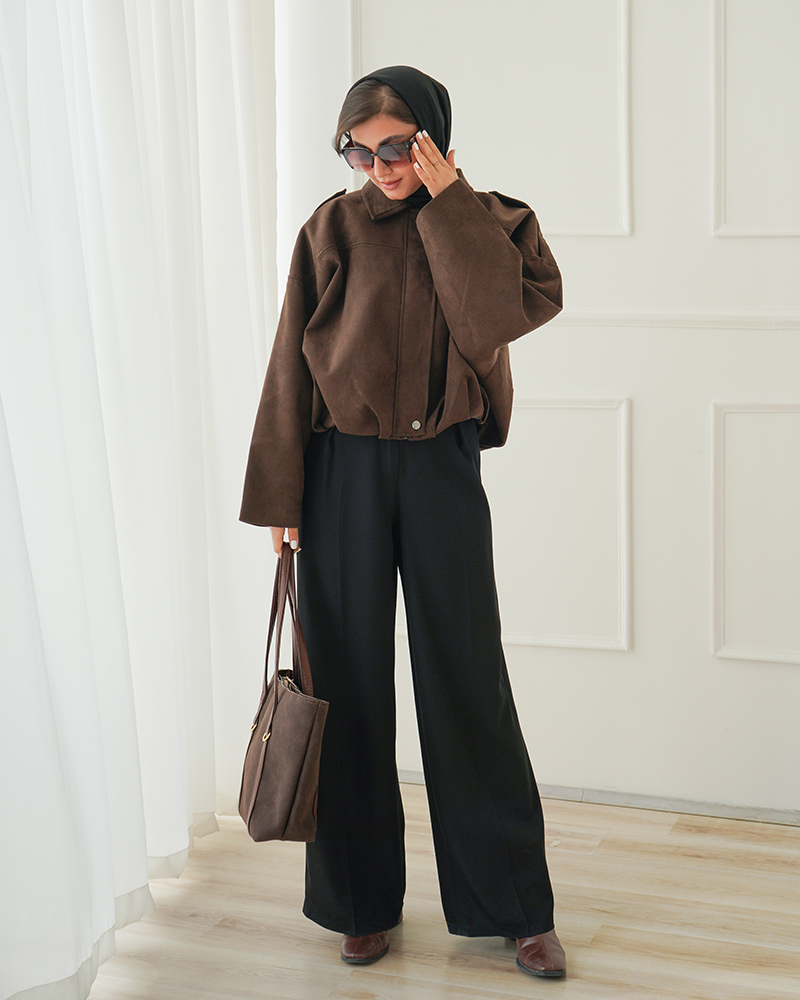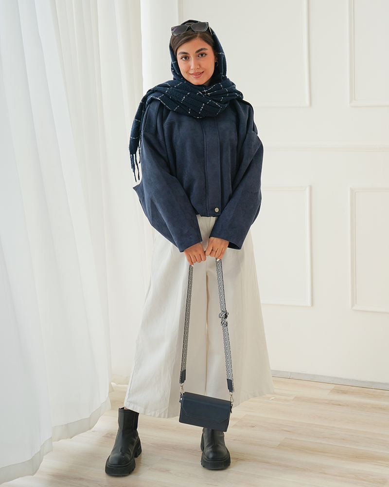 - توضیحات محصول: جنس محصول، سوئیت می باشد. این محصول، یقه مردانه و آستر دار می باشد. این محصول جلو زیپی است.