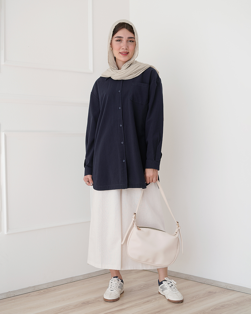 - توضیحات محصول: جنس شومیز لینن می باشد. شومیز جلو دکمه و یقه مردانه بوده و به دلیل قد بلندی که دارد مناسب استفاده روزانه در محل کار ،داشنگاه و ... است. میزان آبرفت از طریق جدول راهنمای سایز قابل مشاهده است.
