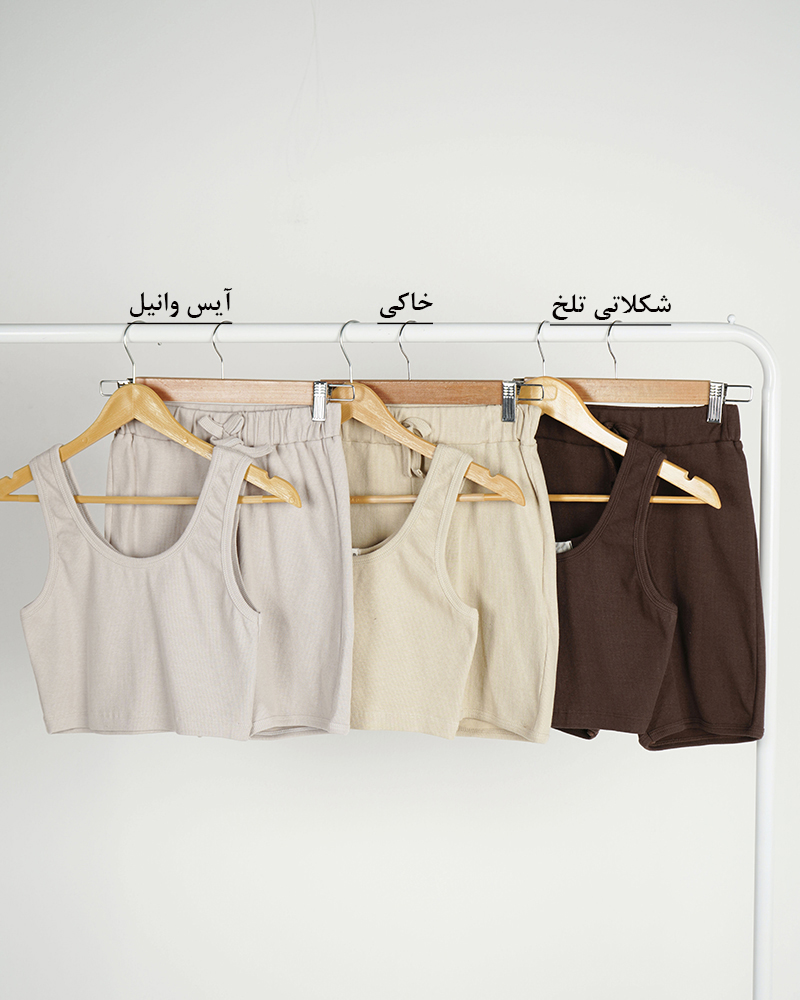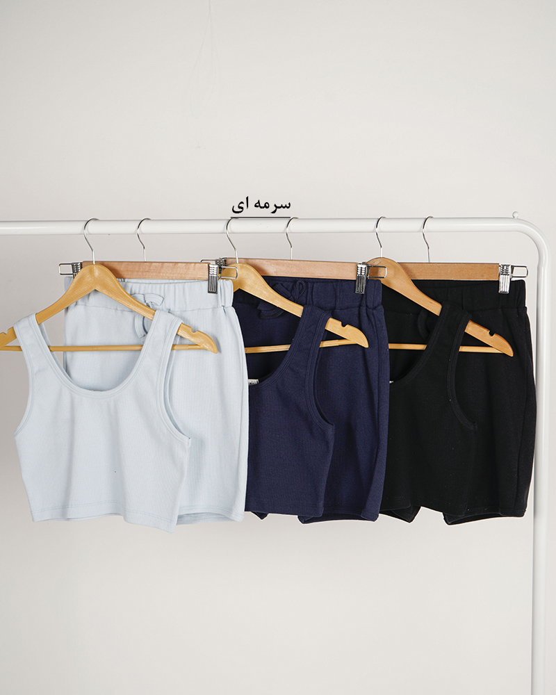 - توضیحات محصول: جنس ست، نخ پنبه کبریتی است. نیم تنه، یقه گرد و حلقه ای می باشد. کمر شورتک، تمام کشی است. ست، کشسانی بالایی دارد.