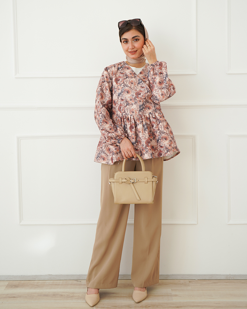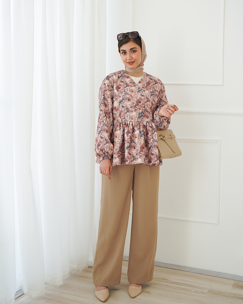 - توضیحات محصول: جنس پارچه شنل کاملیا می باشد. این محصول جلو بسته و یقه هفت است.قسمت دامن پر چین می باشد.