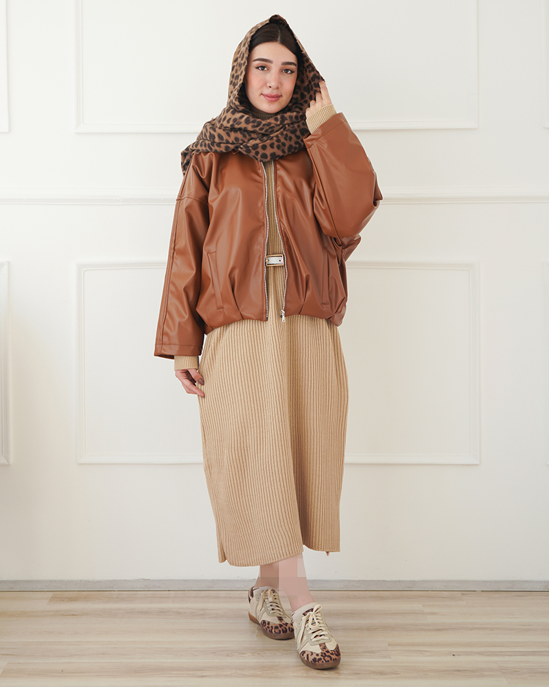 - توضیحات محصول: جنس پیراهن بلند بافت می باشد. بافت یقه هفت و آستین بلند است. این محصول کشسانی بالایی دارد.