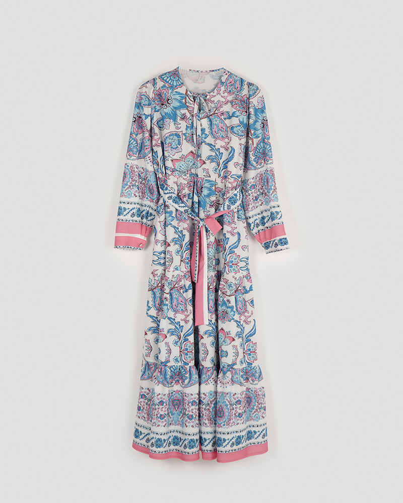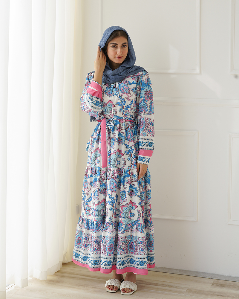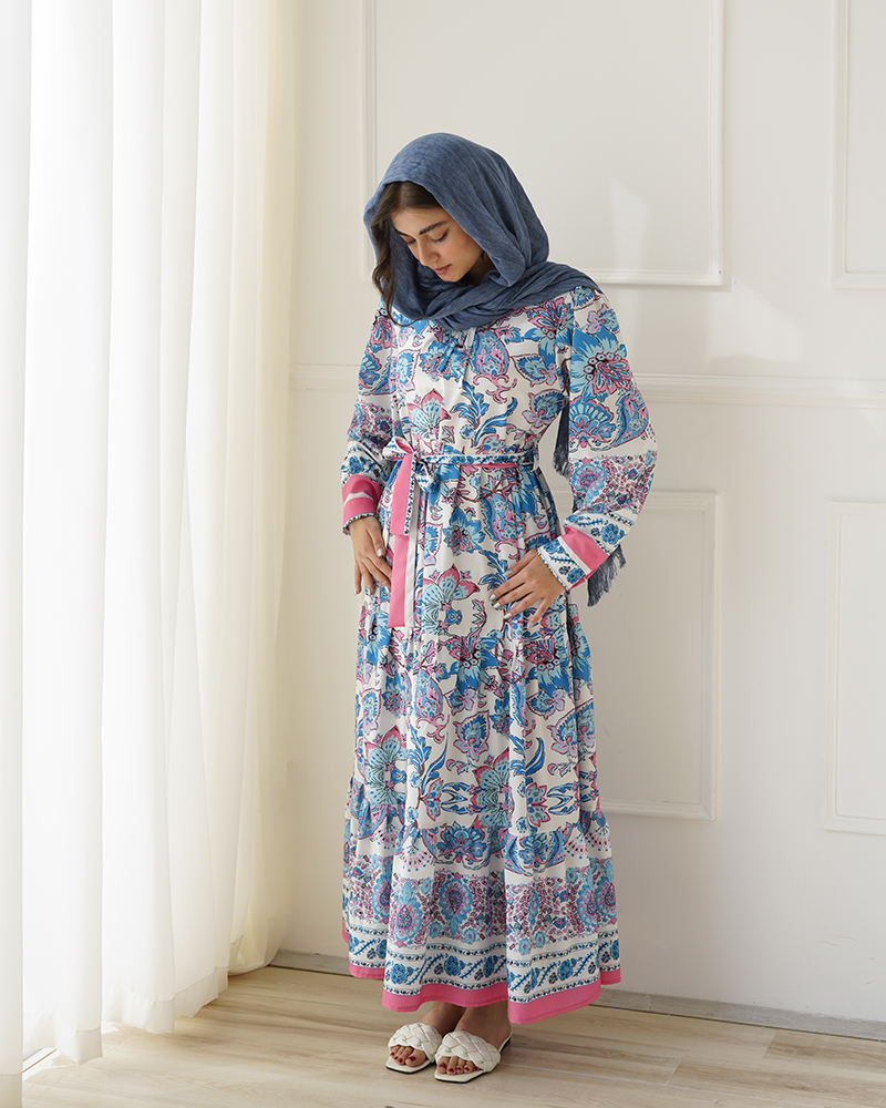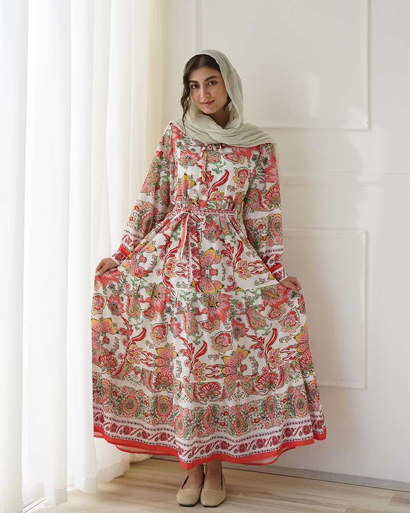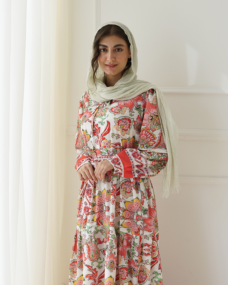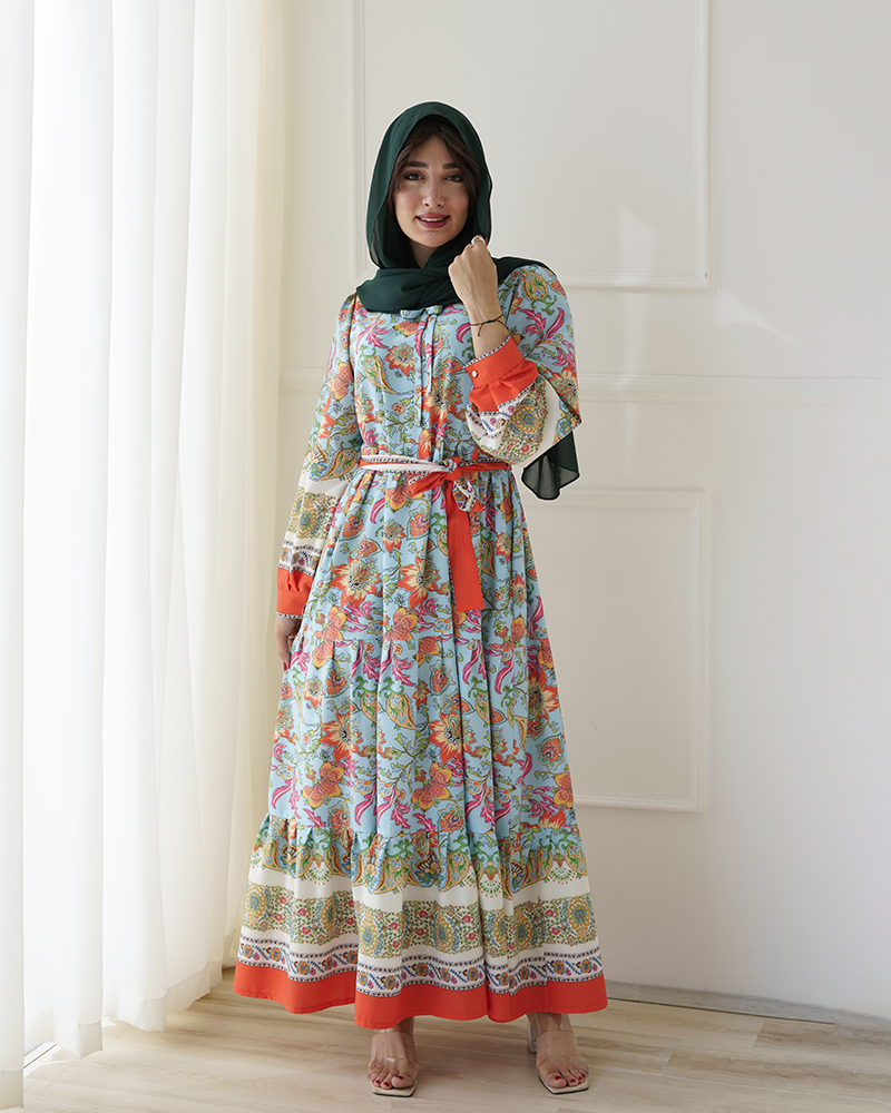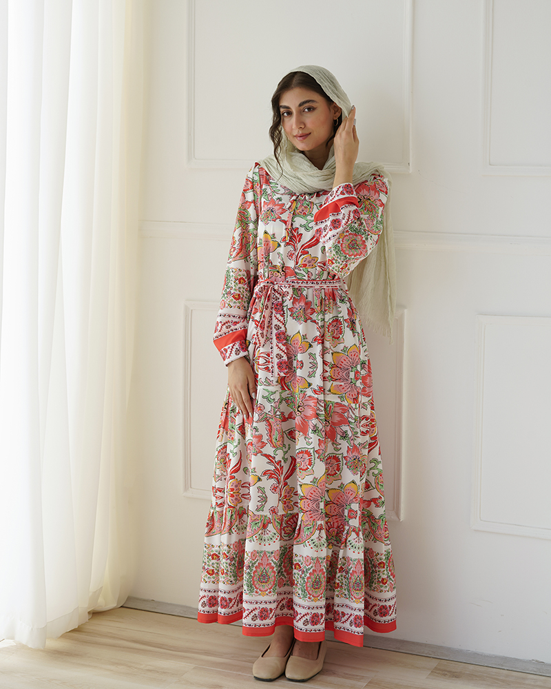 - توضیحات محصول: جنس پیراهن بلند، بوگاتی است. بند های قسمت یقه کاربردی هستند. پیراهن دارای یک کمربند از جنس لباس جهت تنظیم دور کمر می باشد. پیراهن چین دار بوده و دکمه های قسمت آستین کاربردی هستند.