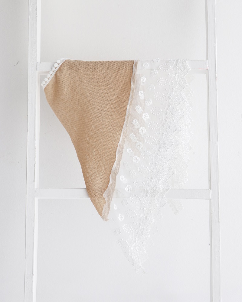 - توضیحات محصول: جنس مینی اسکارف ترکیب نخ و گیپور می باشد. ابعاد مینی اسکارف 110*53 می باشد.