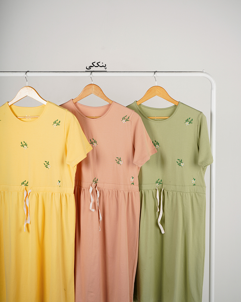 - توضیحات محصول: جنس سارافون نخ و پنبه می باشد. سارافون یقه گرد و آستین کوتاه می باشد. طرح های روی سارافون گلدوزی است. این محصول کمر گتر دار و دامن چین دار است.