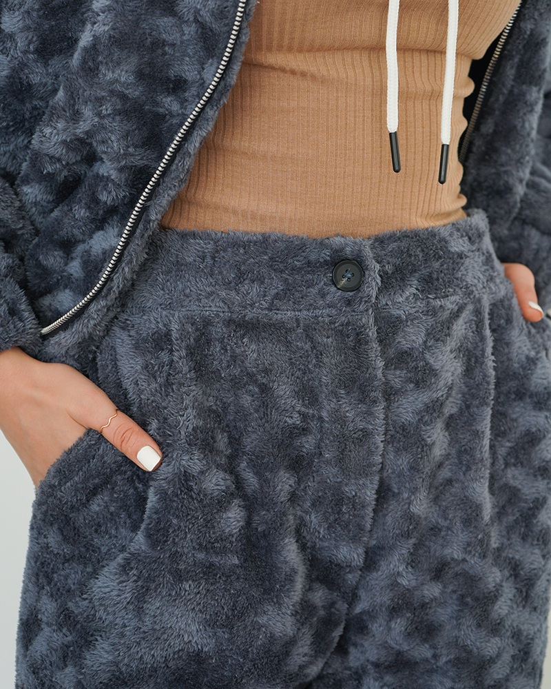 - توضیحات محصول: جنس ست، تدی است. کمر شلوار، پشت کشی و دارای دو جیب کاربردی می باشد. بامبر، آستردار است. بامبر کمر کشی و جلو زیپی است.