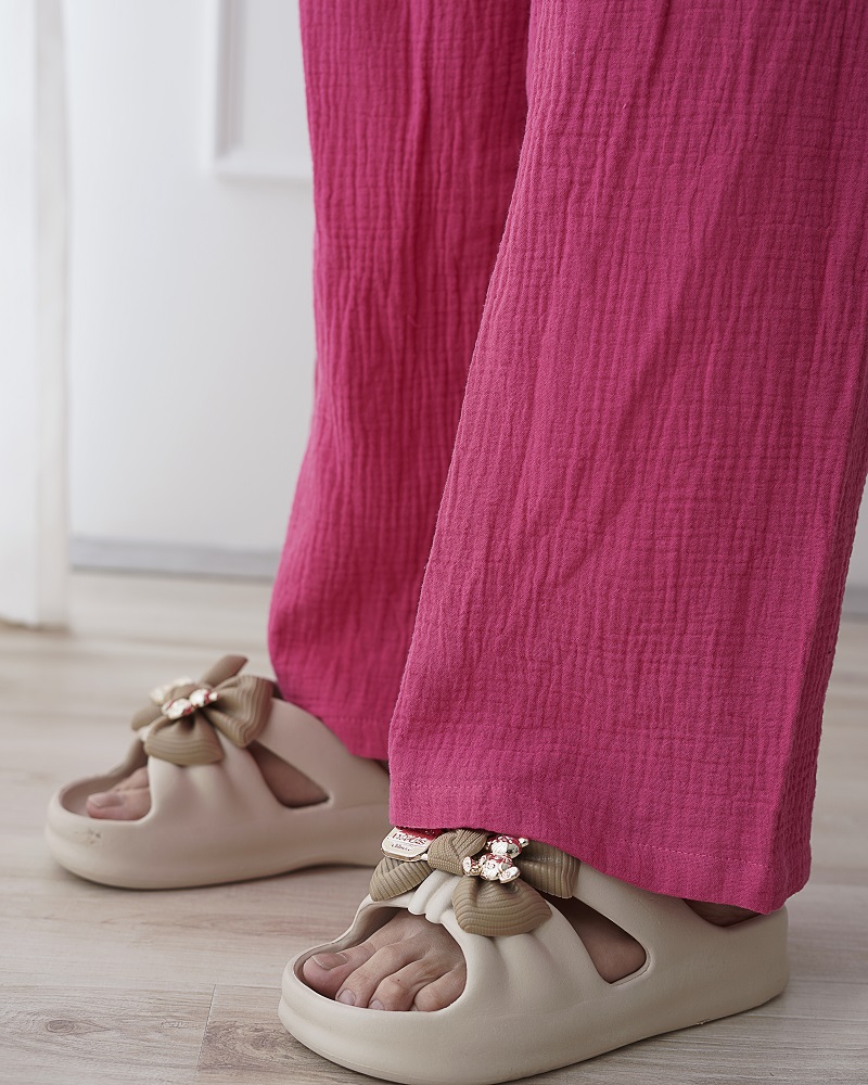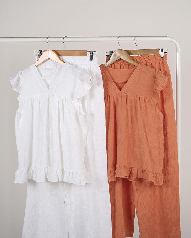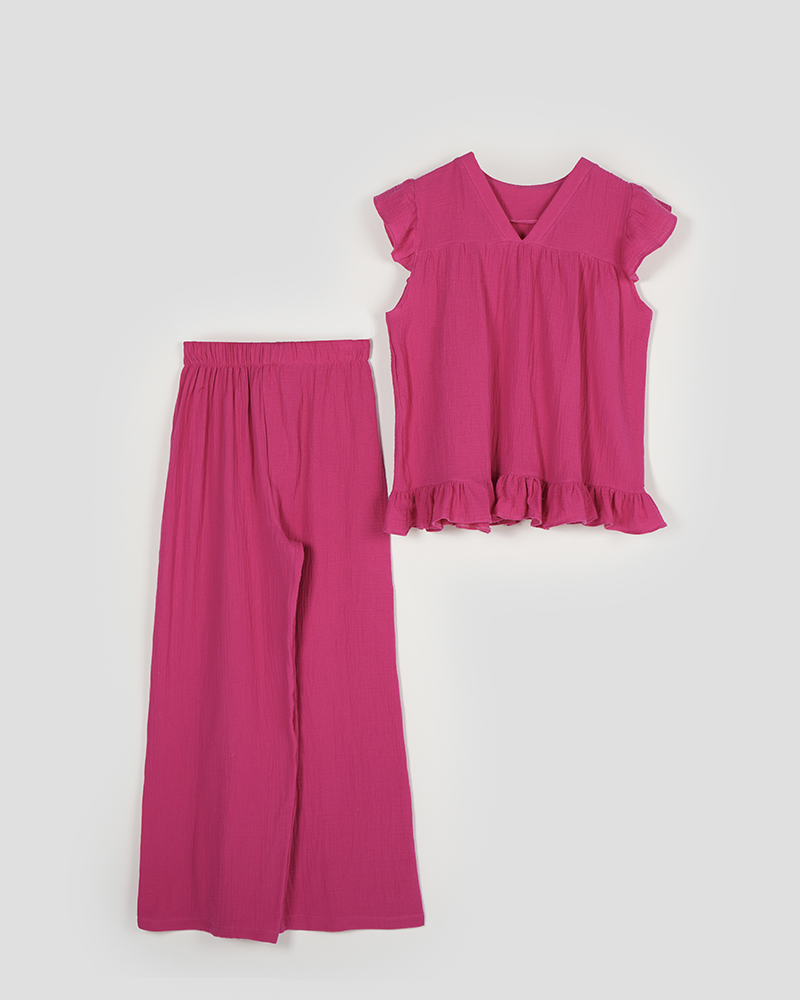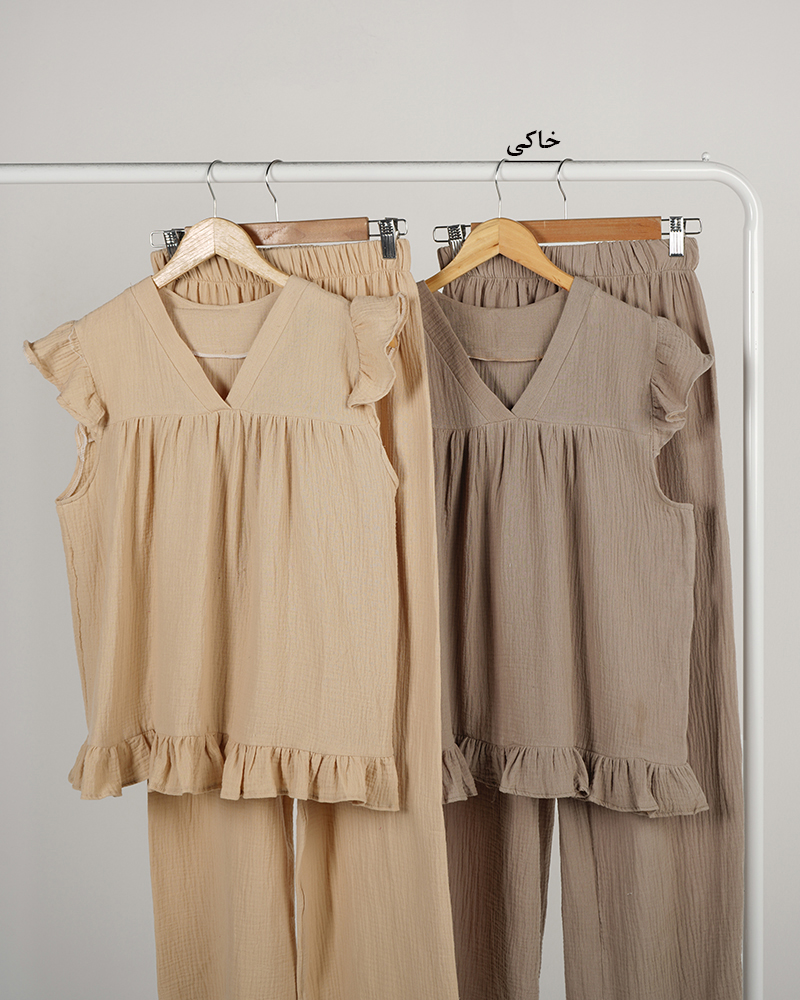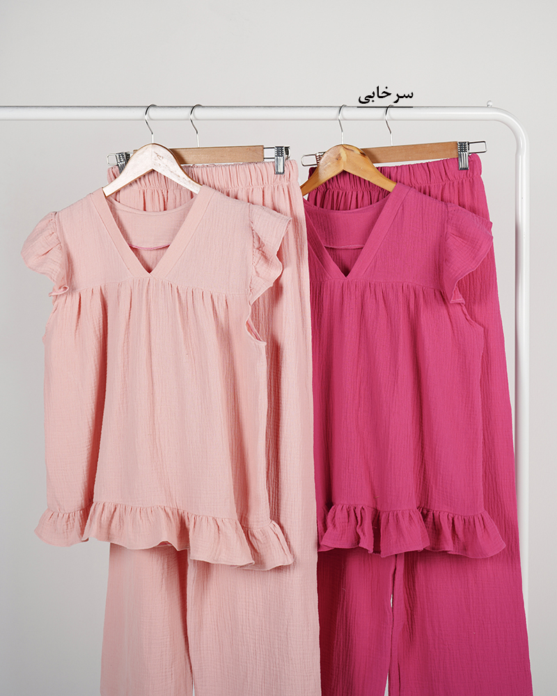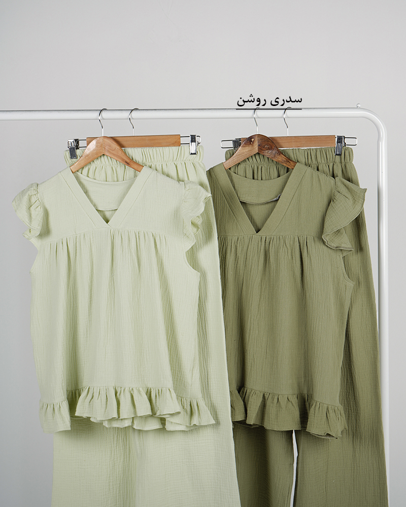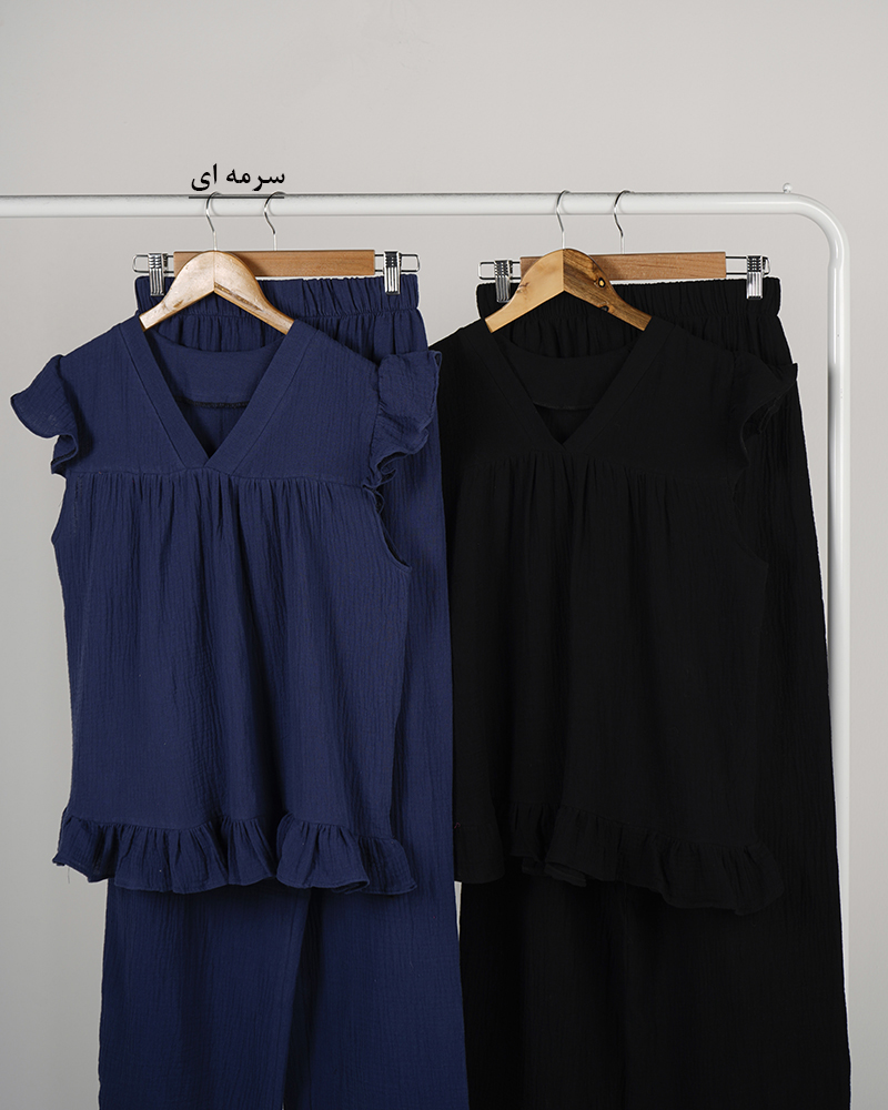 - توضیحات محصول: جنس ست دبل فیس می باشد. بلوز آستین چین دار و یقه گرد می باشد. کمر شلوار تماما کشی است. این ست بسیار خنک و راحت مناسب استفاده روزانه می باشد. میزان آبرفت از طریق جدول راهنمای سایز قابل مشاهده است.