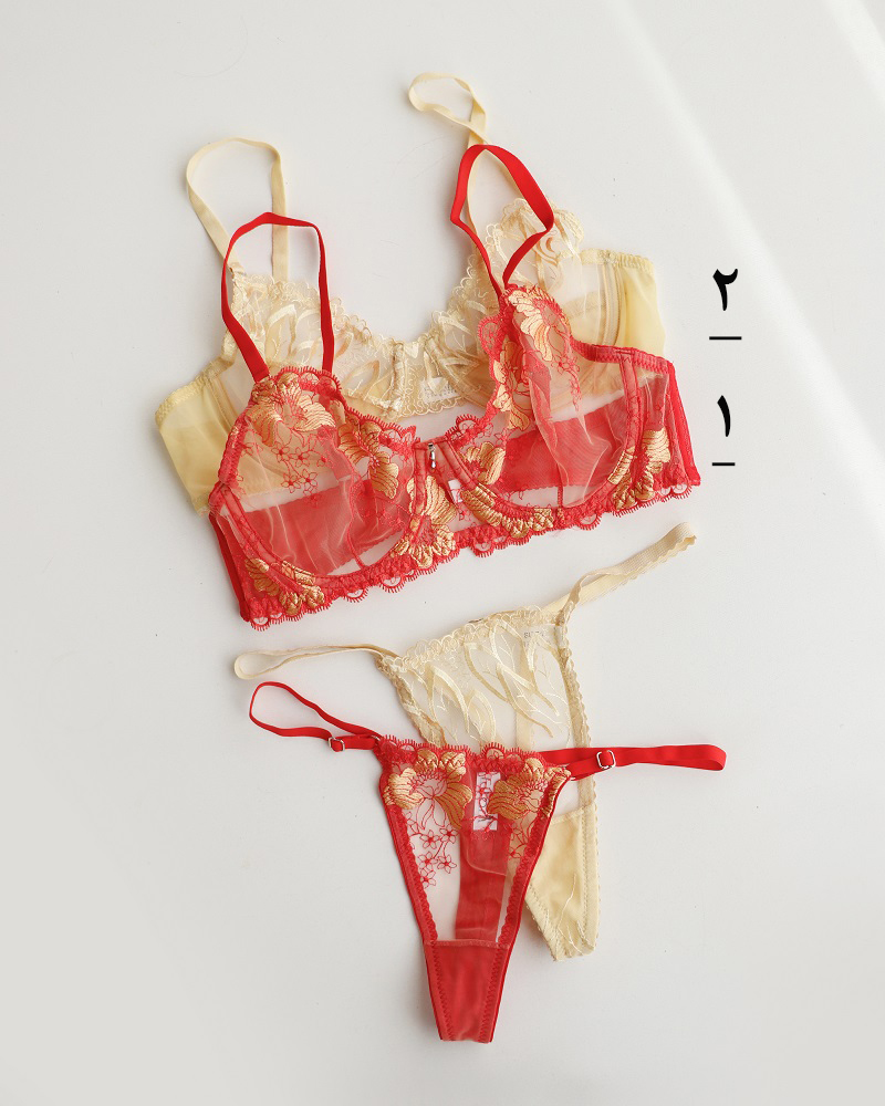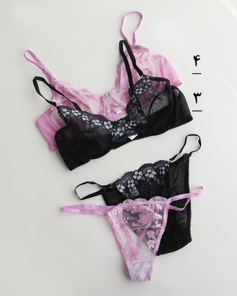 - توضیحات محصول: جنس ست، تورارگانزا و توریاردی است. سوتین فنردار می باشد. طرح های روی ست، گلدوزی شده است. این محصول بدلیل مسائل بهداشتی، امکان تعویض یا مرجوع وجود ندارد.