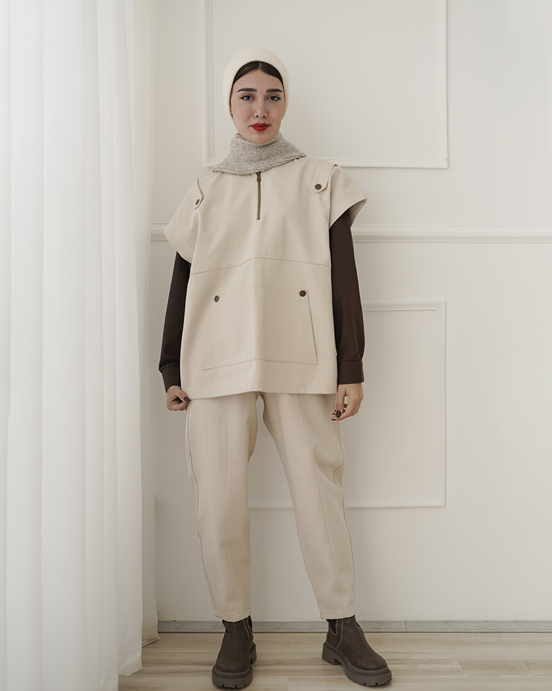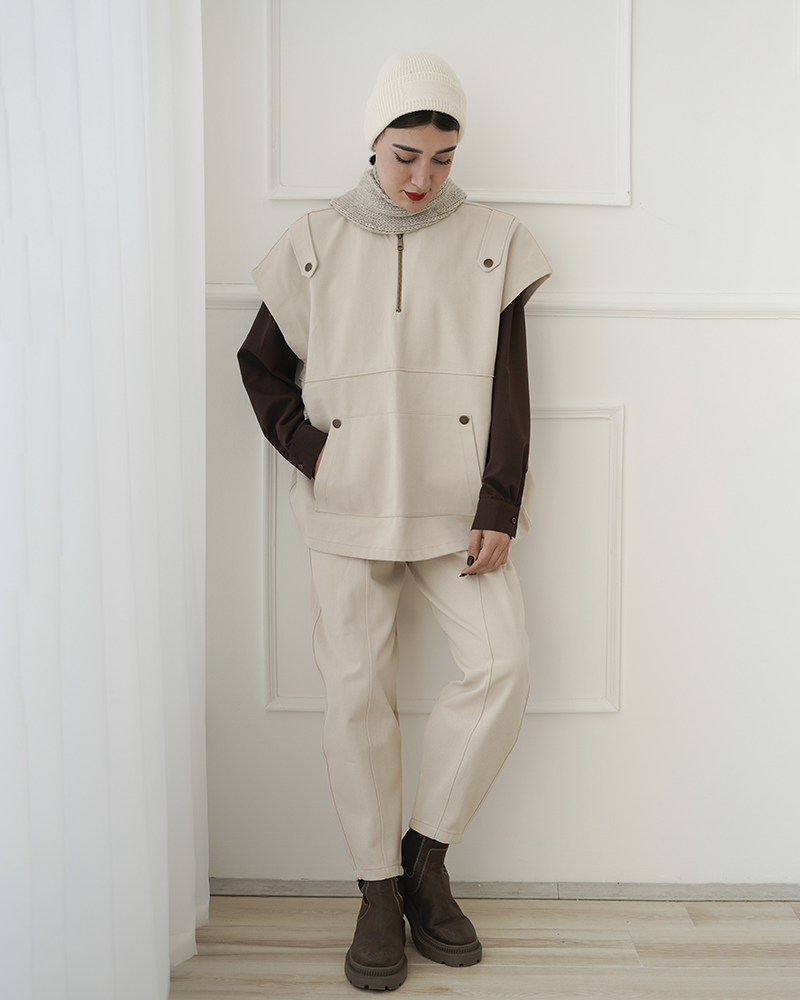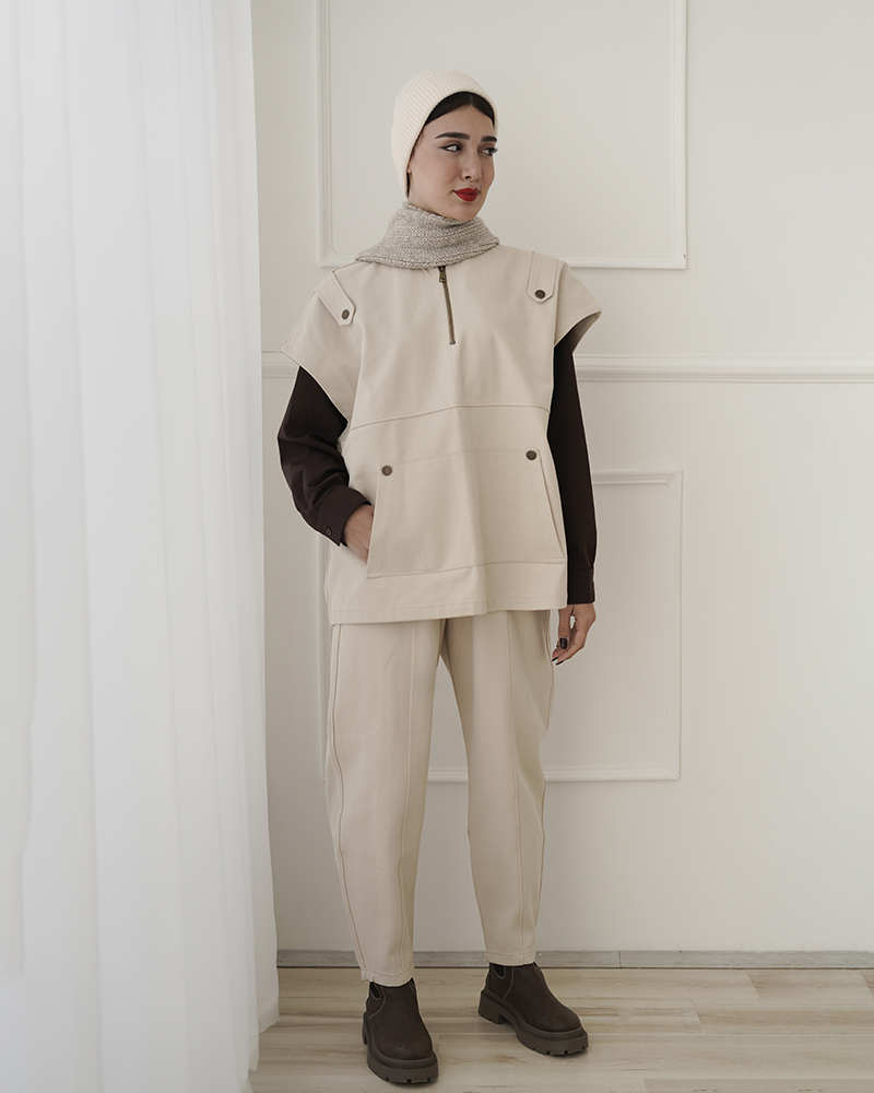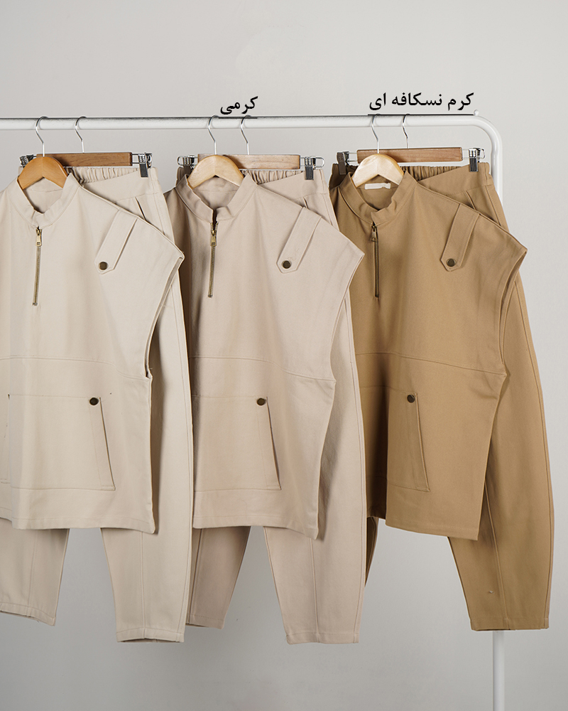 - توضیحات محصول: جنس ست، کتان گرم بالا است. جلیقه، یقه زیپ دار و جیب جلیقه، کاربردی می باشد. شلوار، پشت کشی و دارای دو جیب کاربردی است.