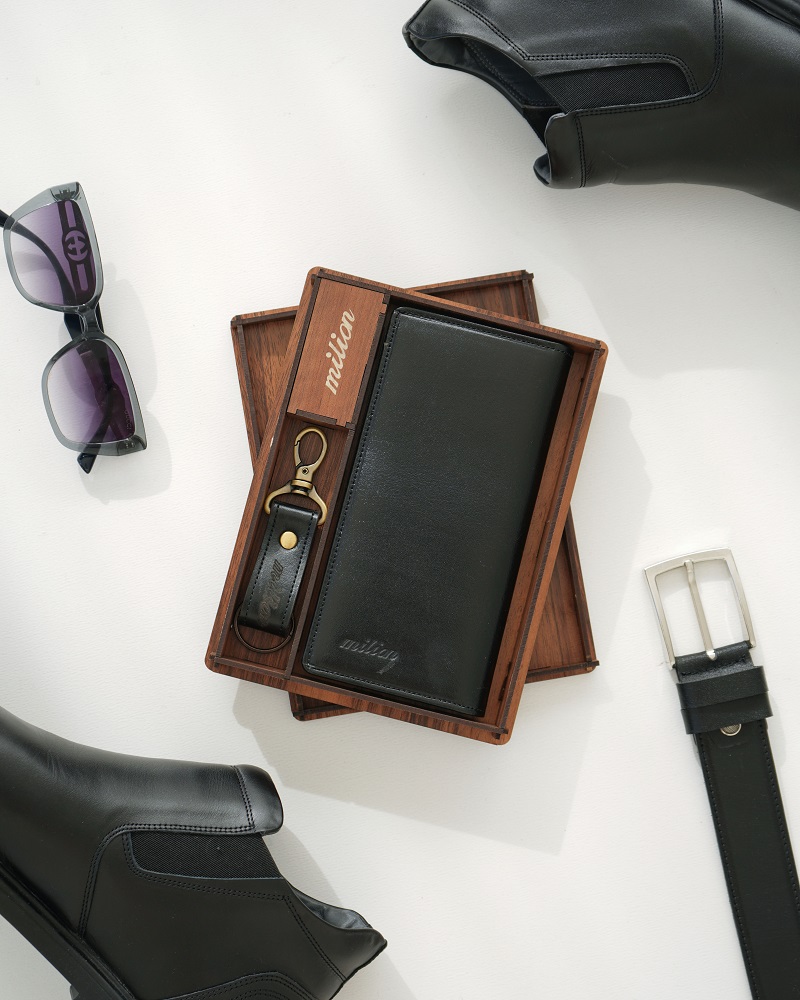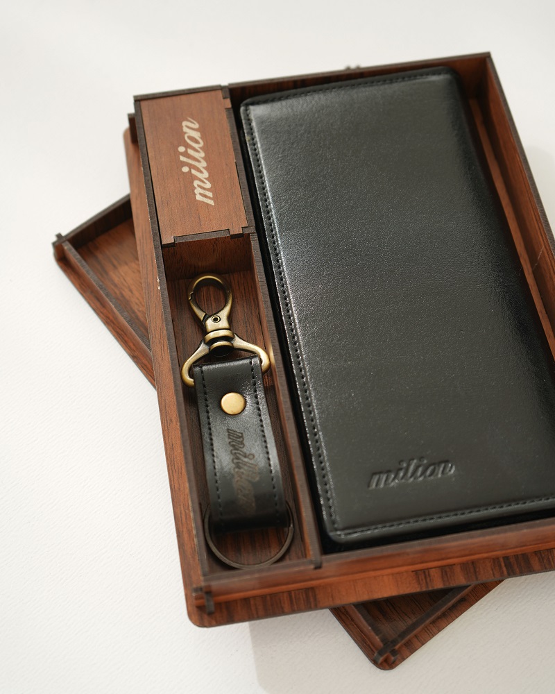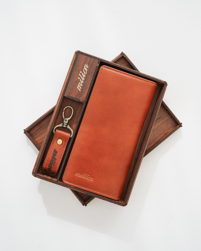 - توضیحات محصول: جنس ست، چرم می باشد. ابعاد کیف :19*9 است. طول جاکلیدی، 13 است.