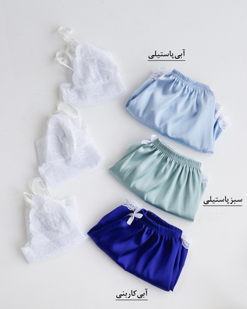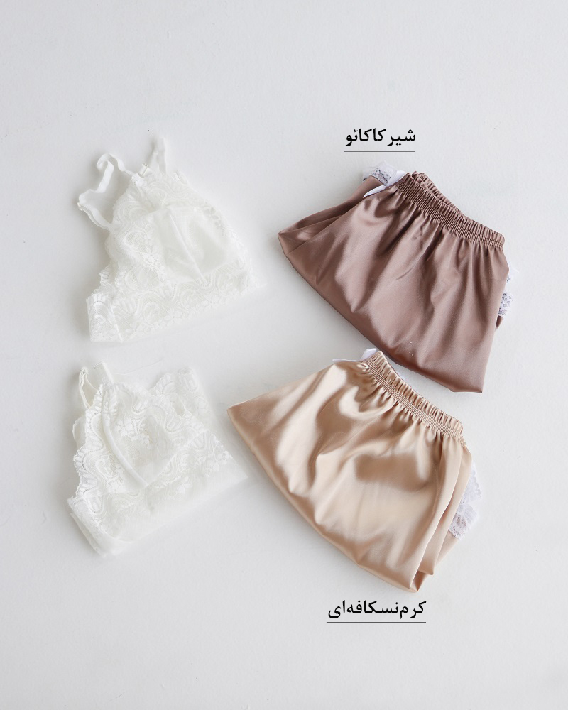 - توضیحات محصول: جنس نیم تنه، دانتل و شورتک، ساتن است. کمر شورتک تماما کشی می باشد. این محصول بدلیل مسائل بهداشتی، امکان تعویض یا مرجوع وجود ندارد.