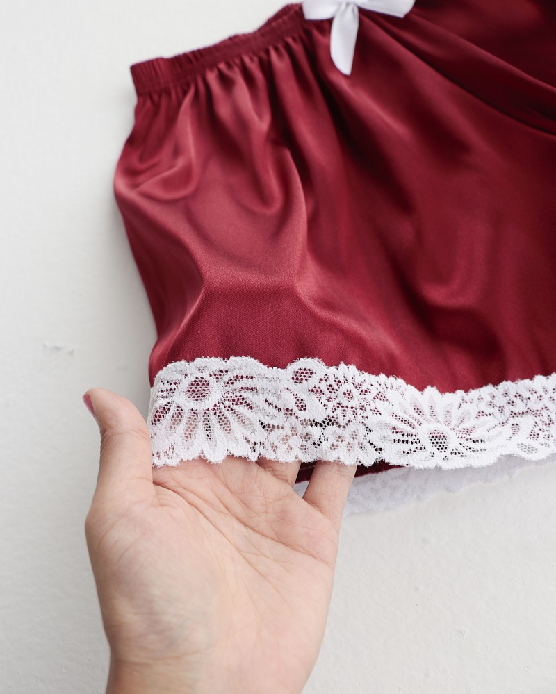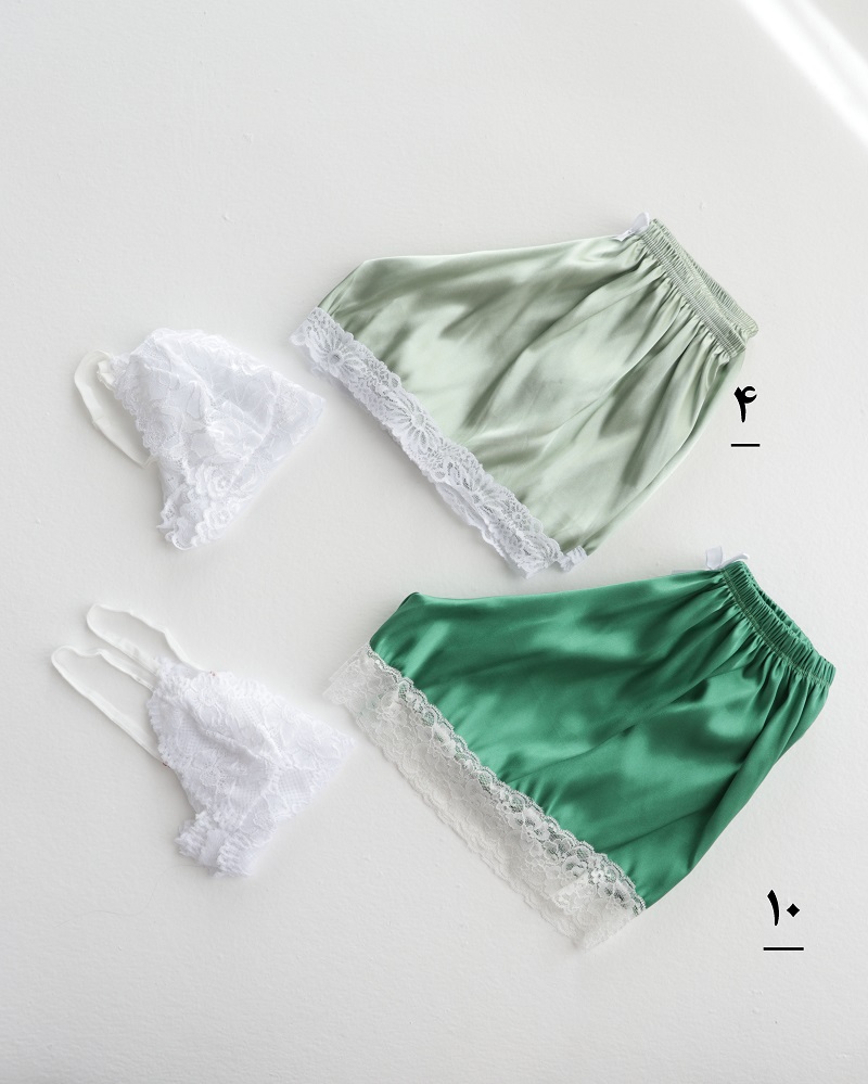 - توضیحات محصول: جنس نیم تنه، دانتل و شورتک، ساتن است. کمر شورتک تماما کشی می باشد. این محصول بدلیل مسائل بهداشتی، امکان تعویض یا مرجوع وجود ندارد.