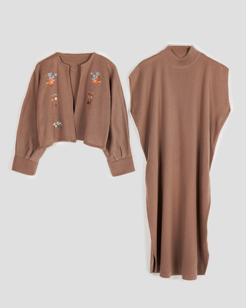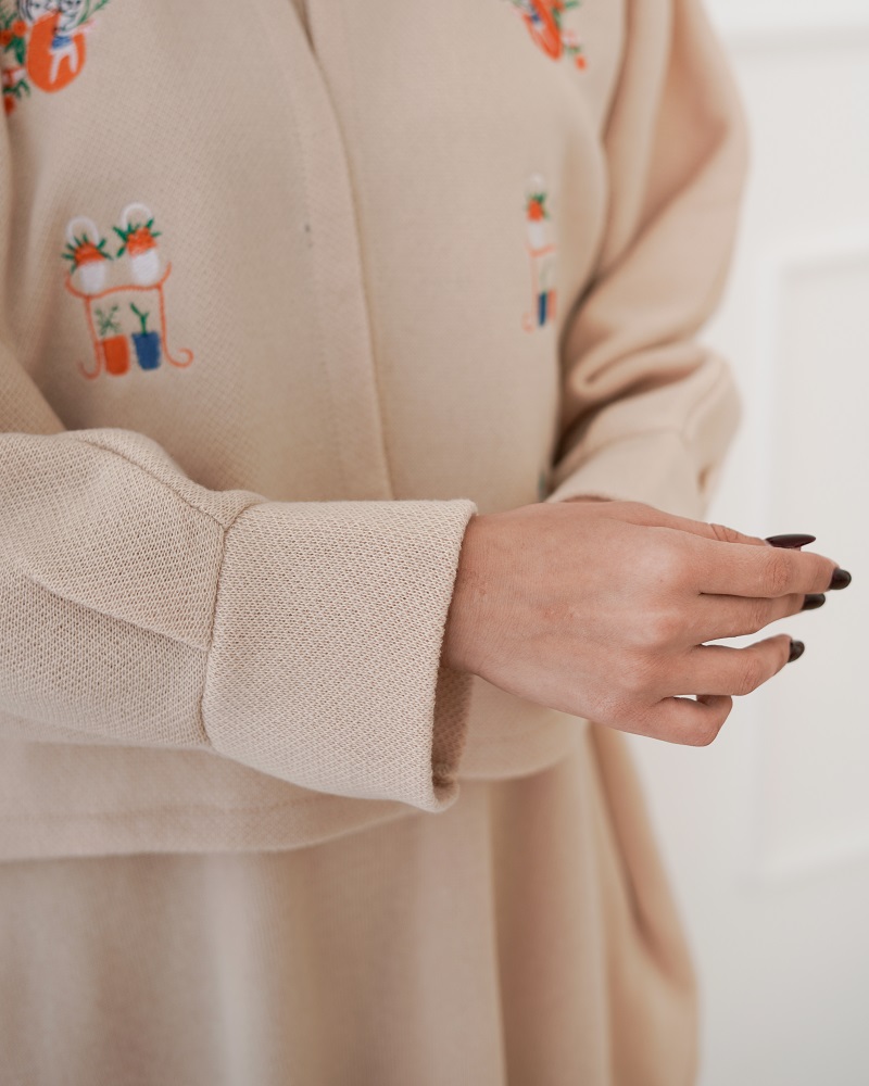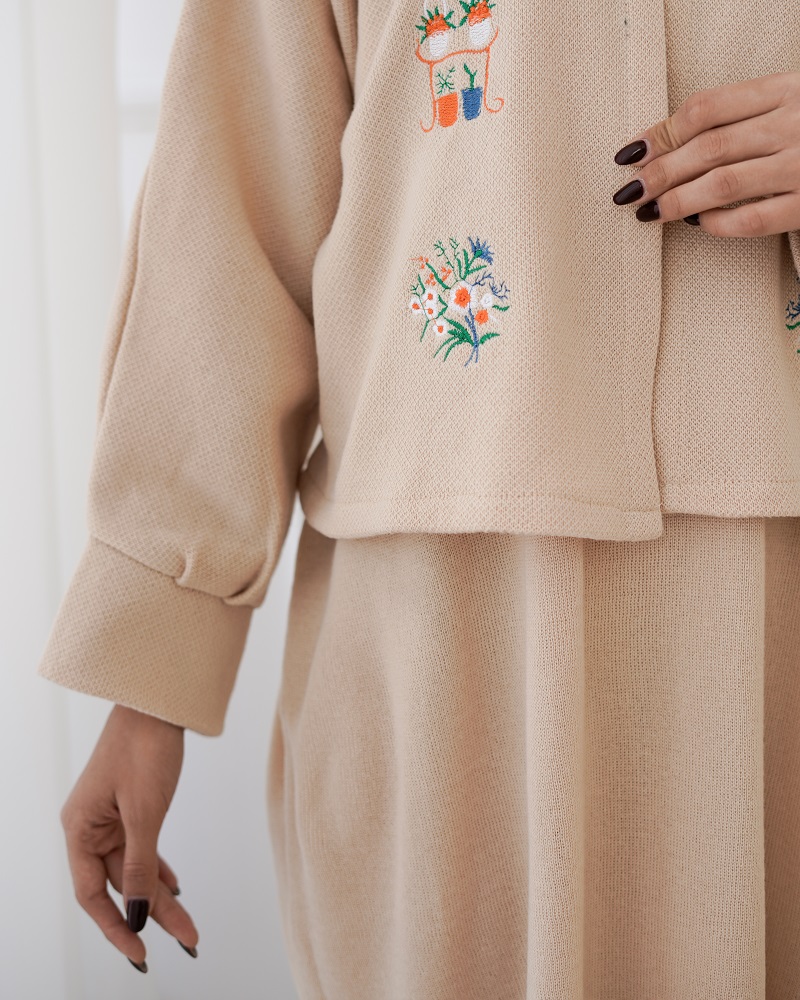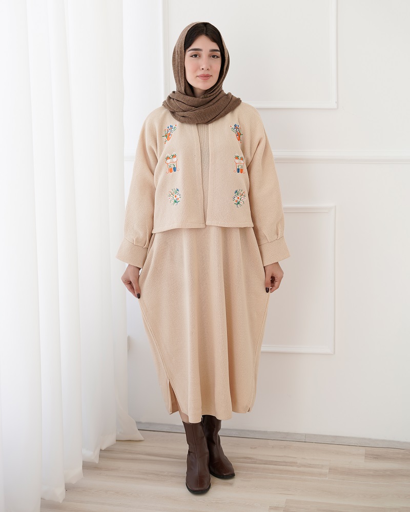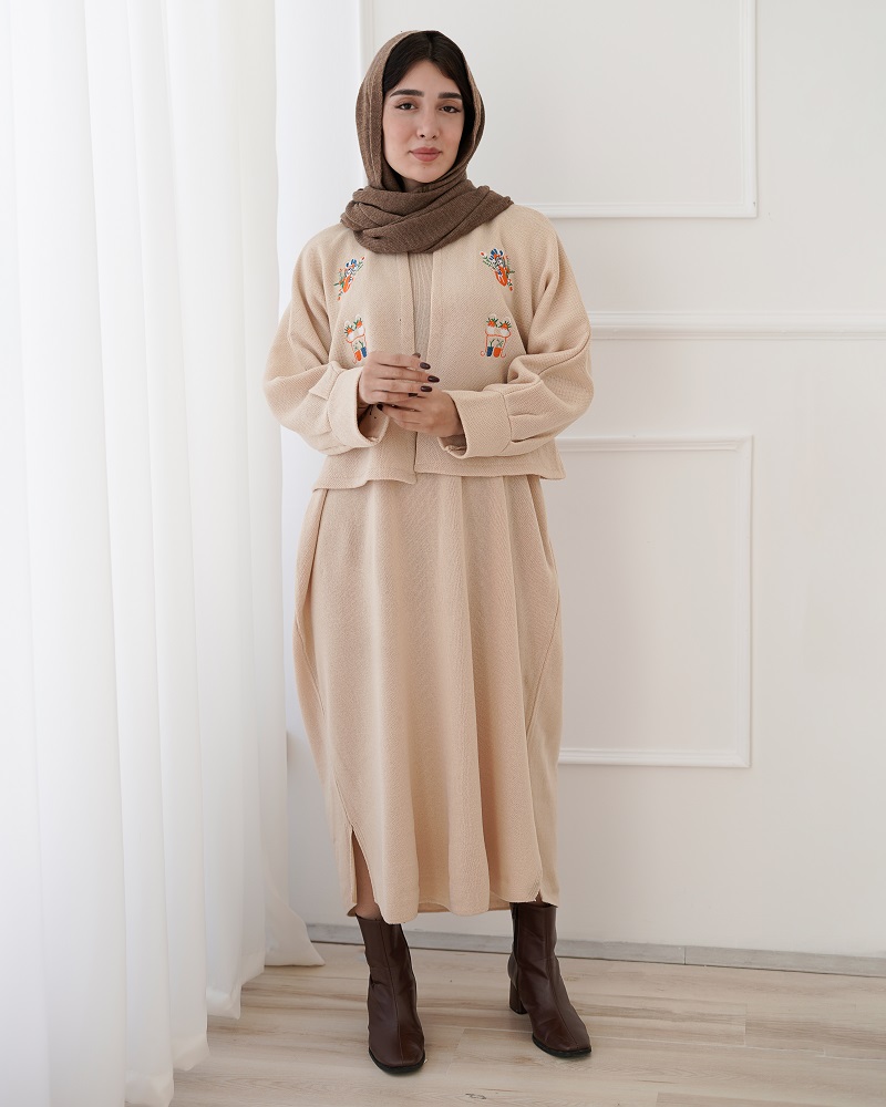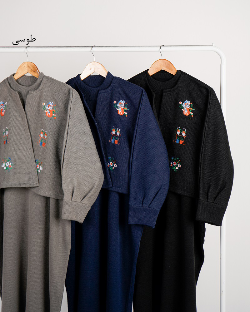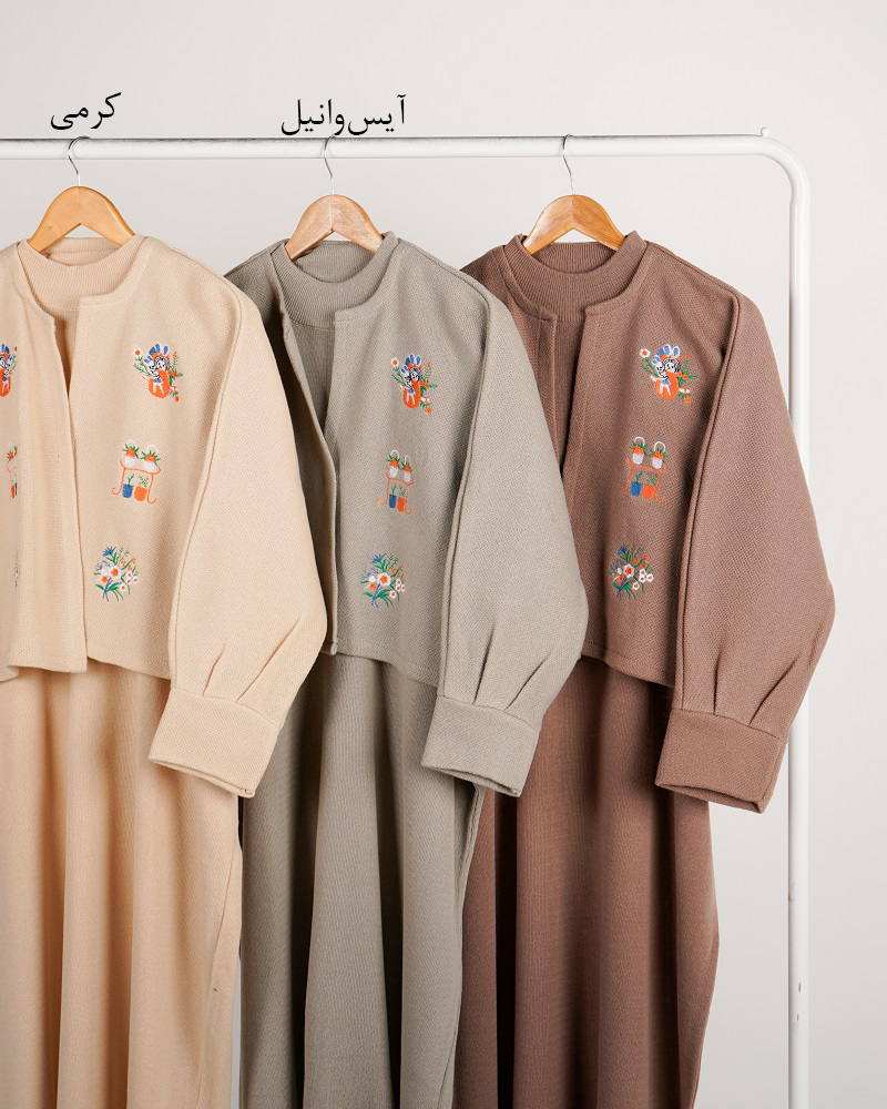 - توضیحات محصول: جنس ست، بافت است. طرح های روی، رویه لباس، گلدوزی شده است. ست، کشسانی بالایی دارد.