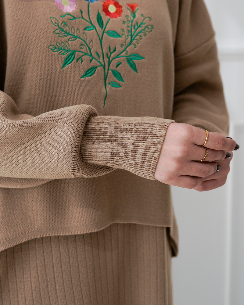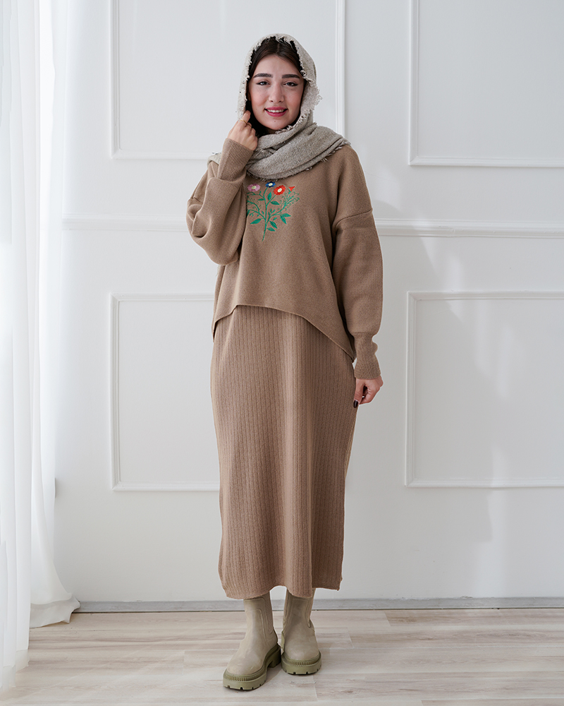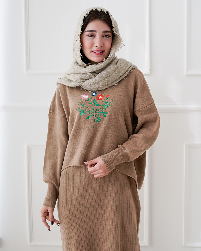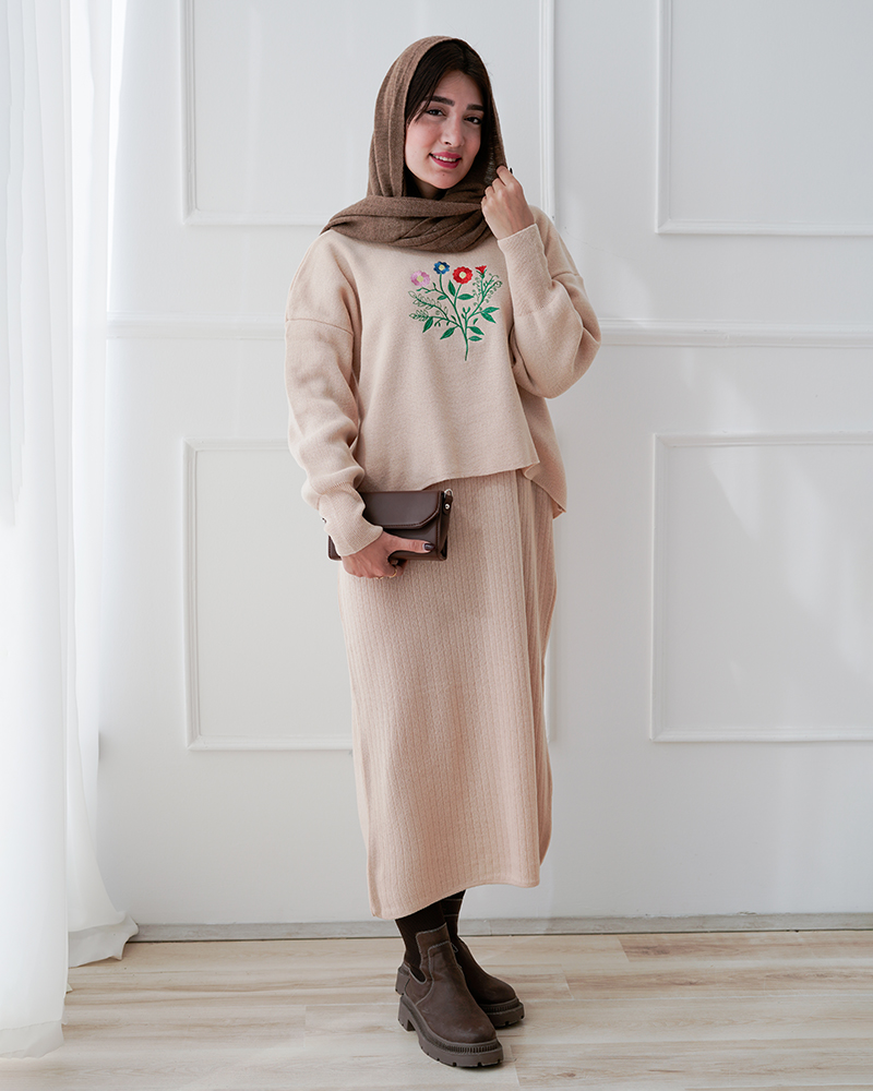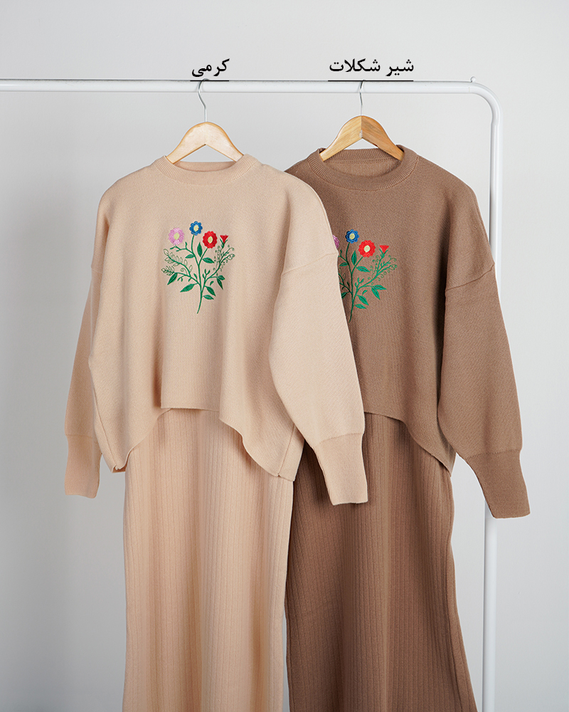 - توضیحات محصول: جن ست بافت می باشد. ست شامل یک بلوز (رویه) و یک سارافون می باشد. سارافون حلقه ای و یقه گرد است. ست با کشسانی بالا و بسیار با کیفیت مناسب استفاده روزمره است. طرح های روی بلوز گلدوزی شده می باشد.