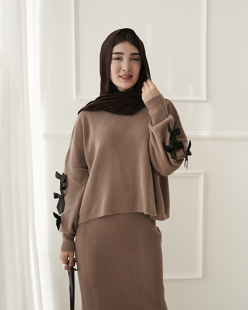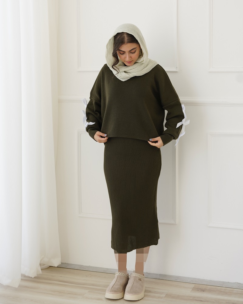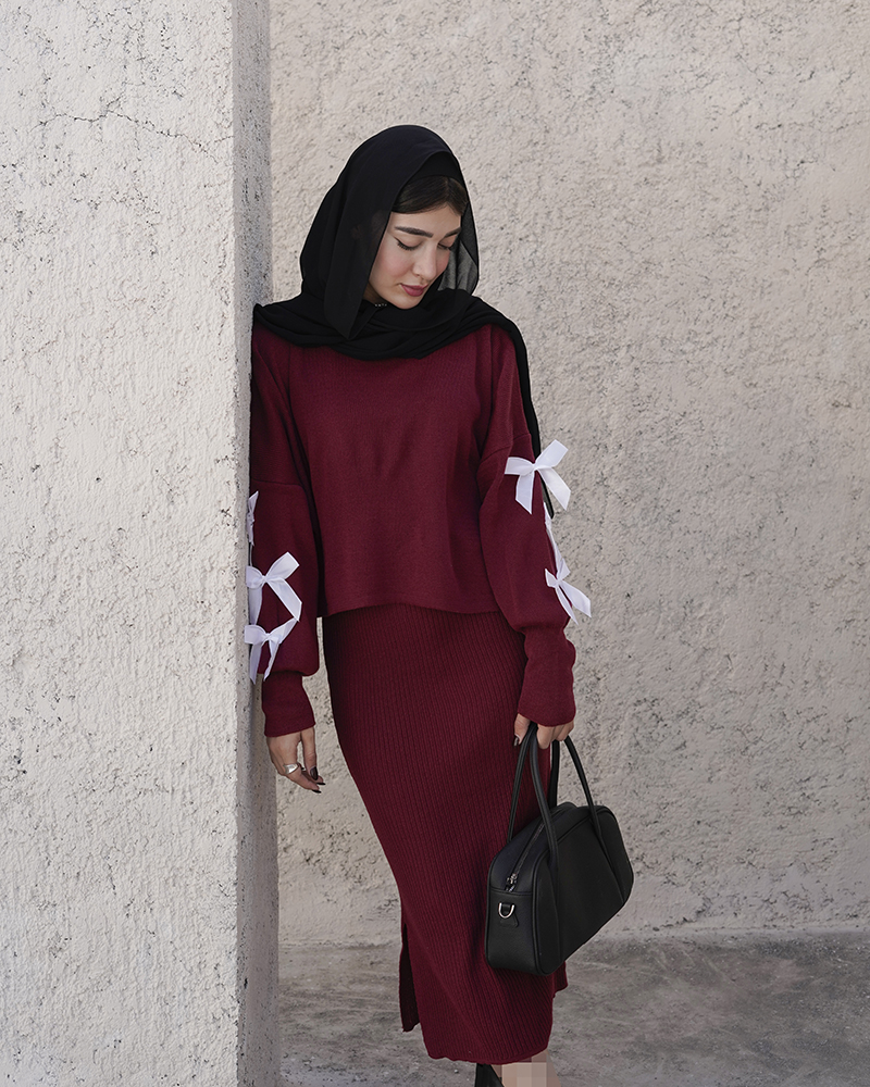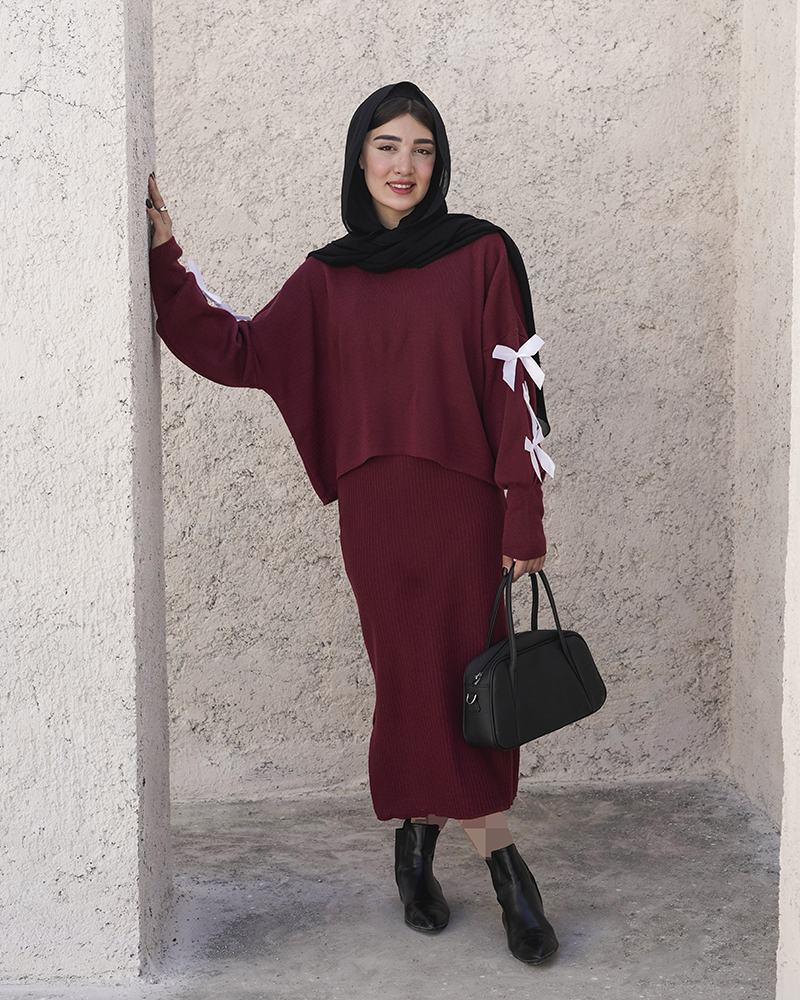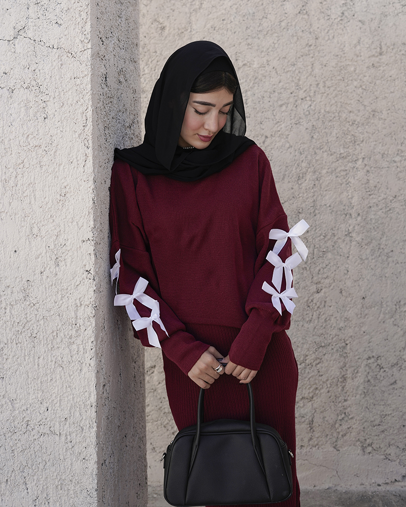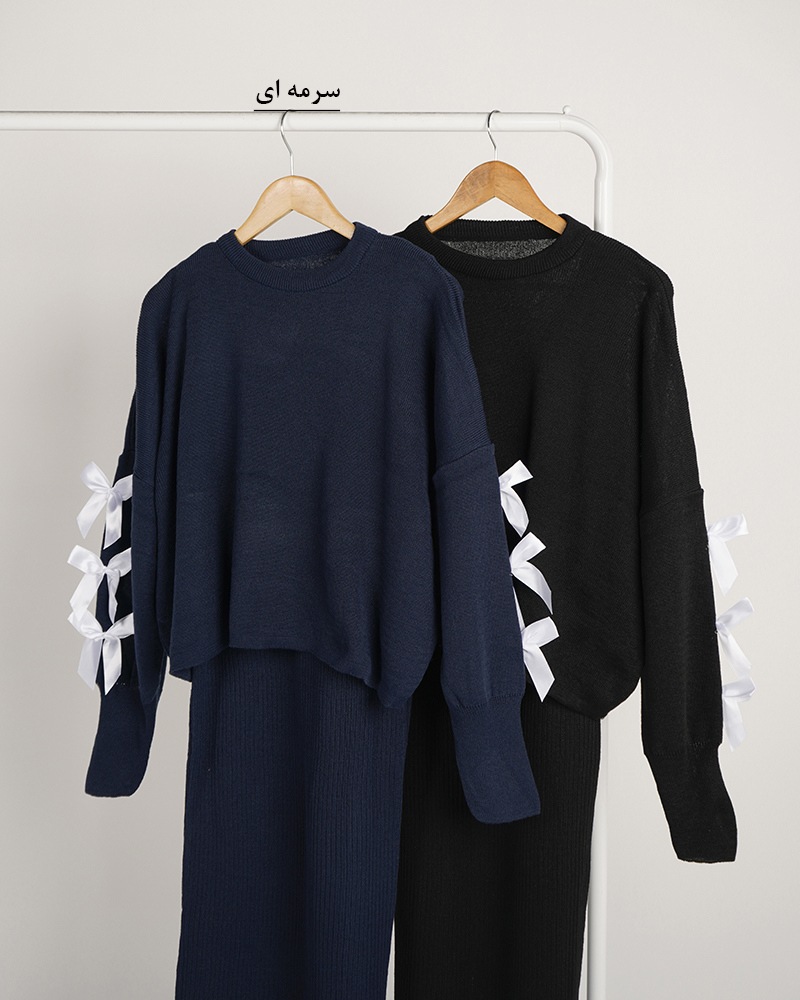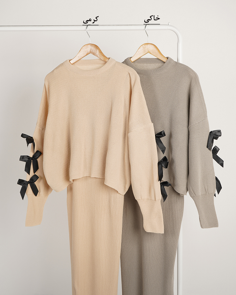 - توضیحات محصول: جنس ست، بافت است. پاپیون های روی آستین، دوخته شده است. ست، کشسانی بالایی دارد.