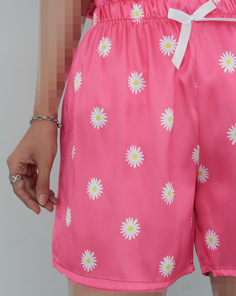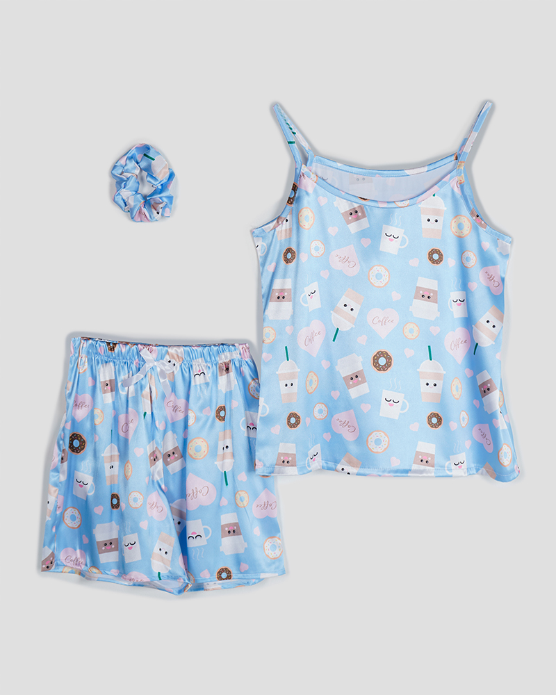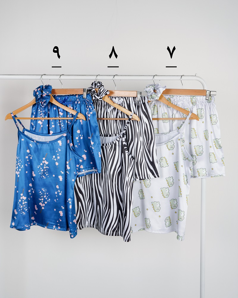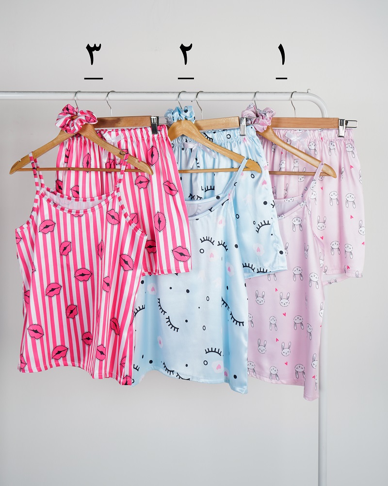 - توضیحات محصول: جنس ست ساتن می باشد. تاپ بندی است. کمر شورتک تماما کشی می باشد. ست شامل: تاپ، شورتک، اسکرانچی است.