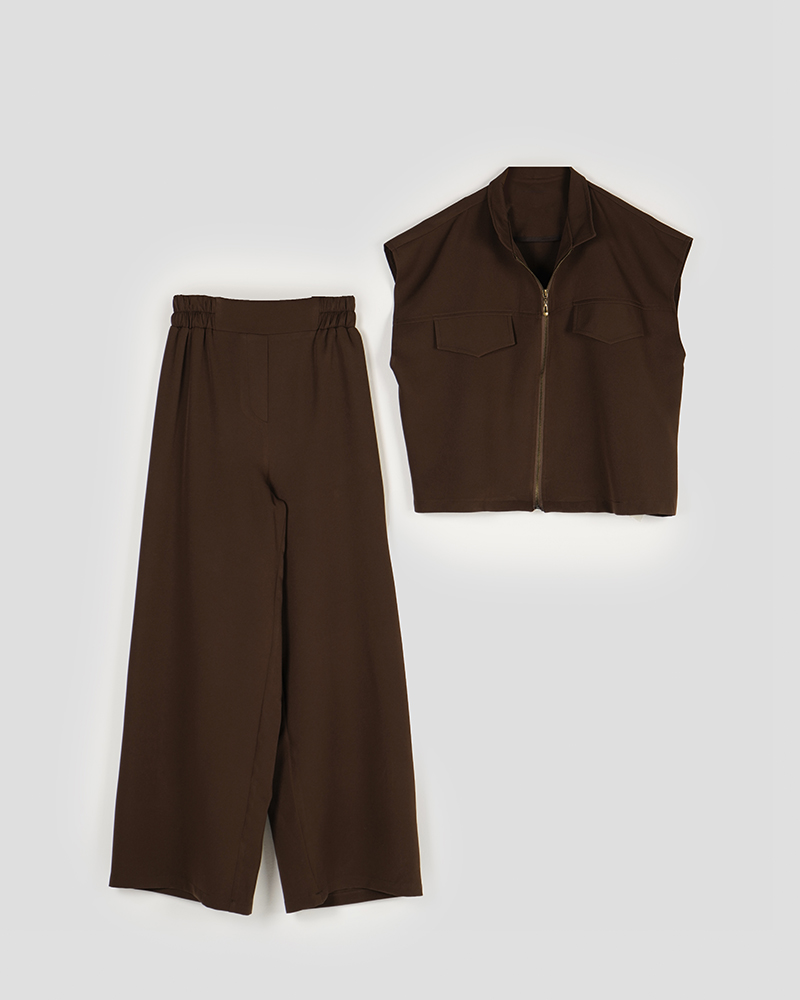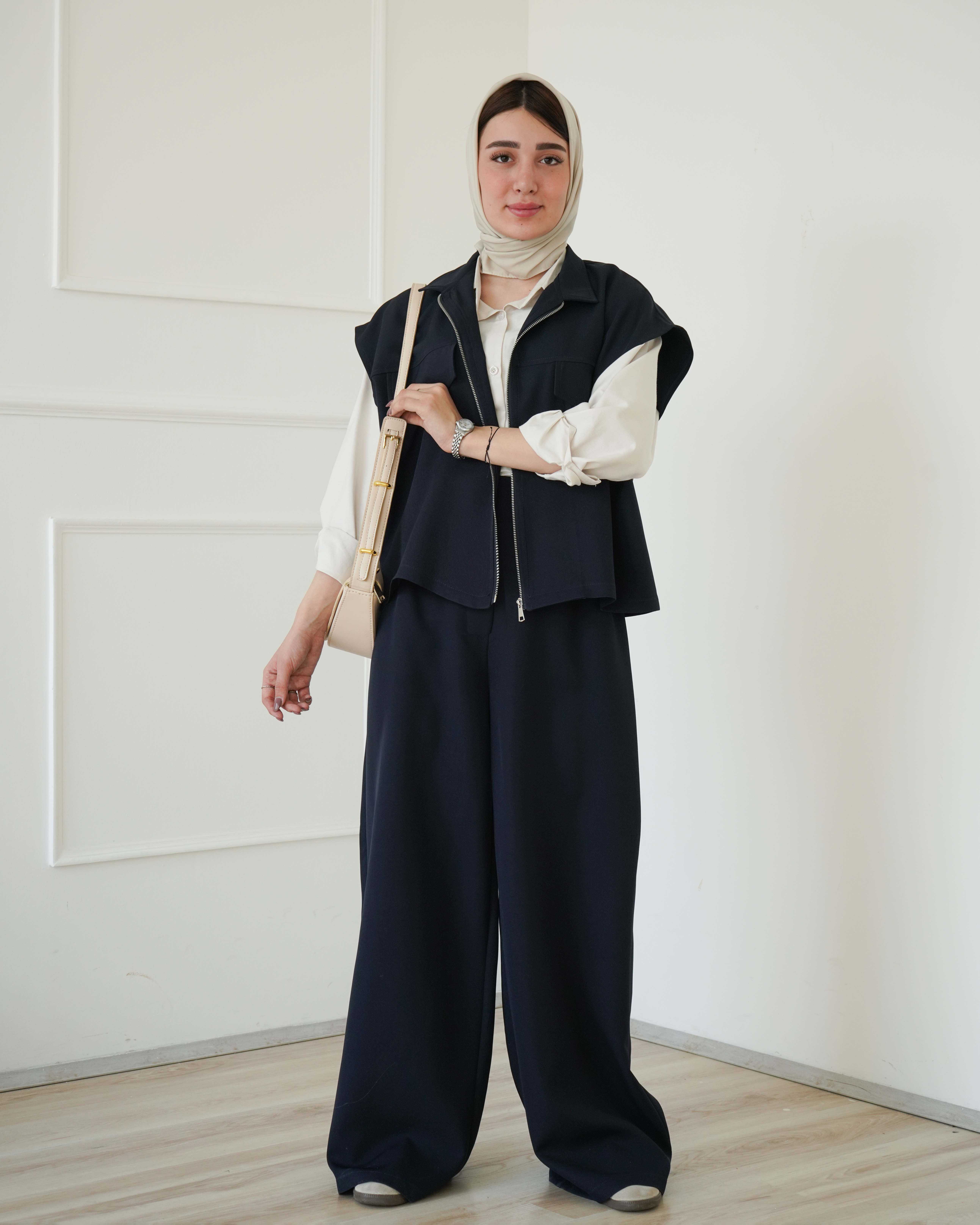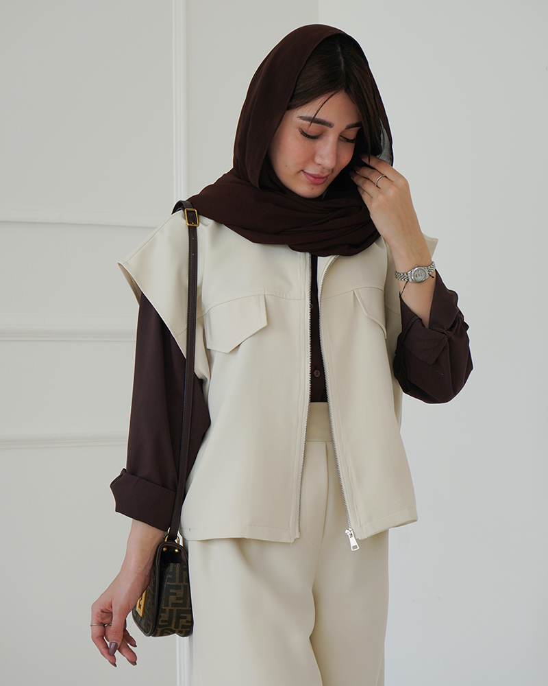 - توضیحات محصول: جنس ست کرپ مازراتی می باشد. ست شامل یک وست و یک شلوار است. وست جلو زیپی ،یقه مردانه و آستین حلقه ای می باشد. جیب های ست نما هستند. کمر شلوار این ست پشت کشی و تنخور شلوار بگ است.
