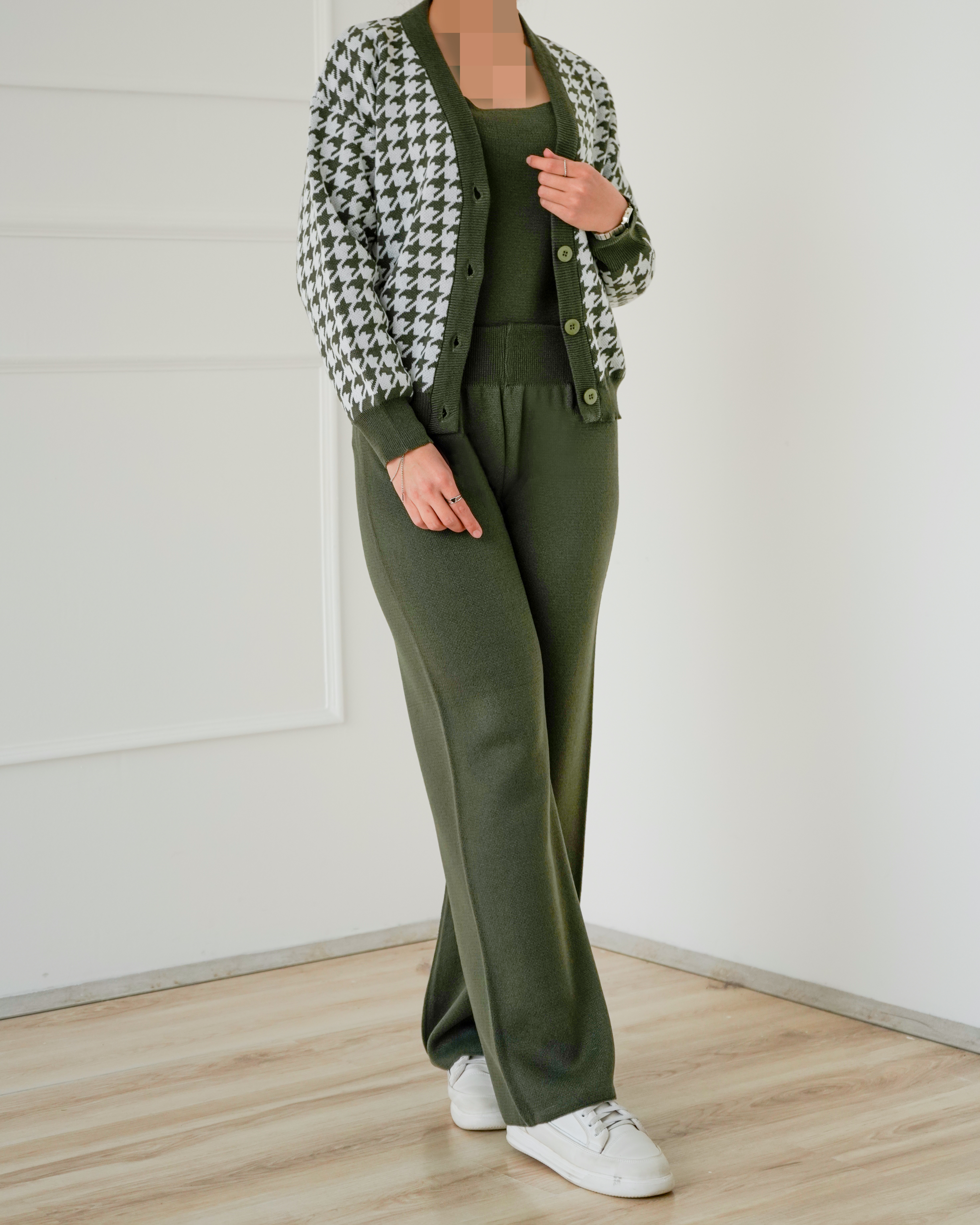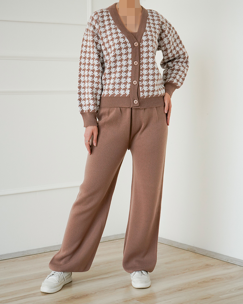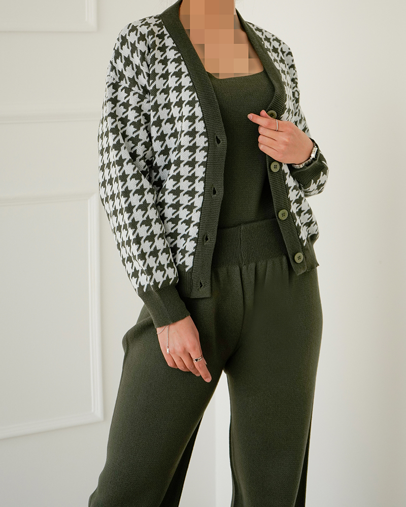 - توضیحات محصول: جنس ست بافت می باشد. ست شامل یک تاپ ،شلوار و یک ژاکت می باشد. تاپ یقه گرد و آستین حلقه ای است. کمر شلوار تماما کشی است. ژاکت یقه هفت و آستین بلند و هم چنین دارای دکمه های کاربردی می باشد. ست بسیار با کیفیت و با دوام و هم چنین دارای کشسانی بسیار بالایی می باشد.