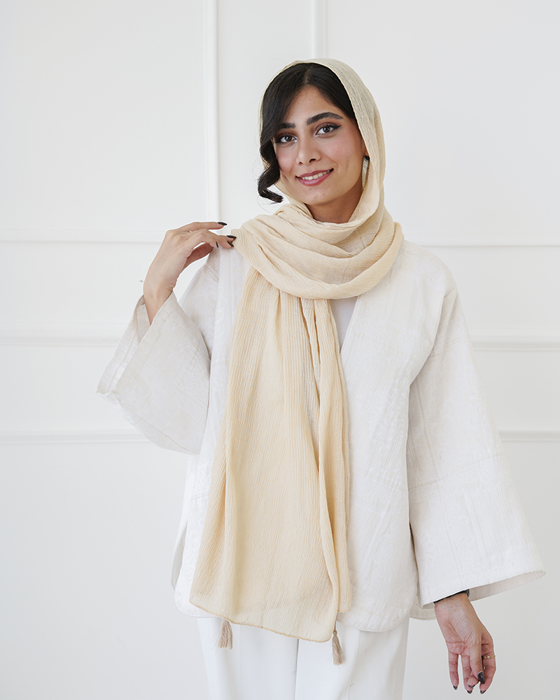 - توضیحات محصول: جنس شال پلیسه نخی می باشد. ابعاد شال 69*184 می باشد.