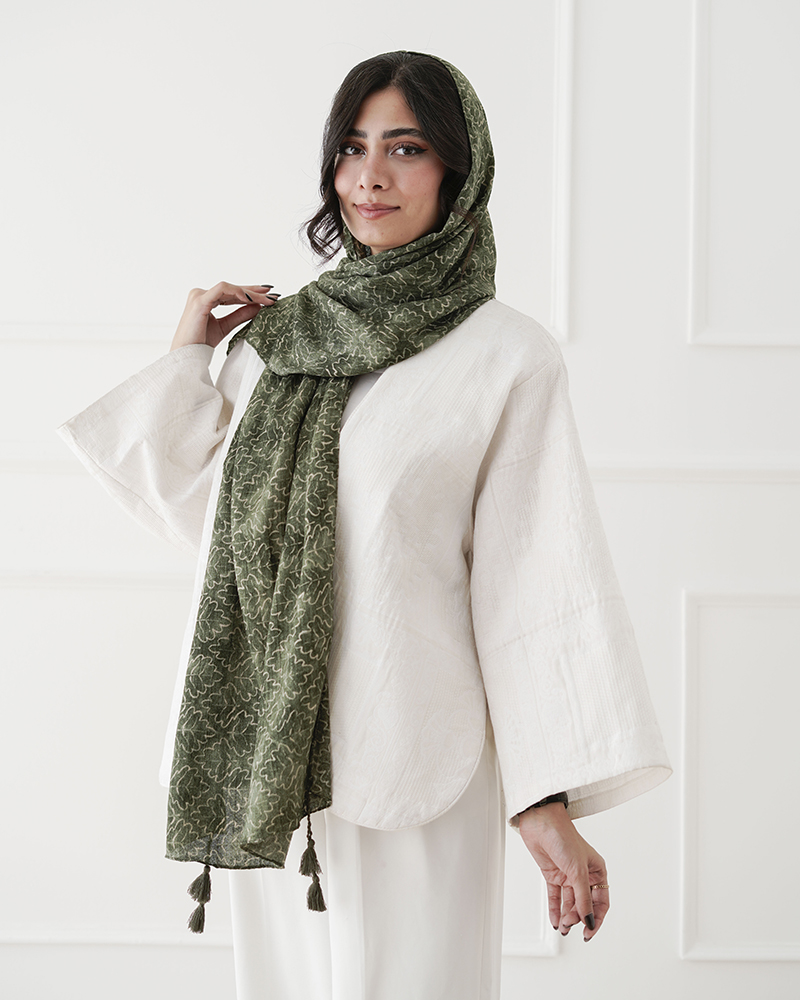 - توضیحات محصول: جنس شال، نخی می باشد. ابعاد شال 188*58 می باشد.