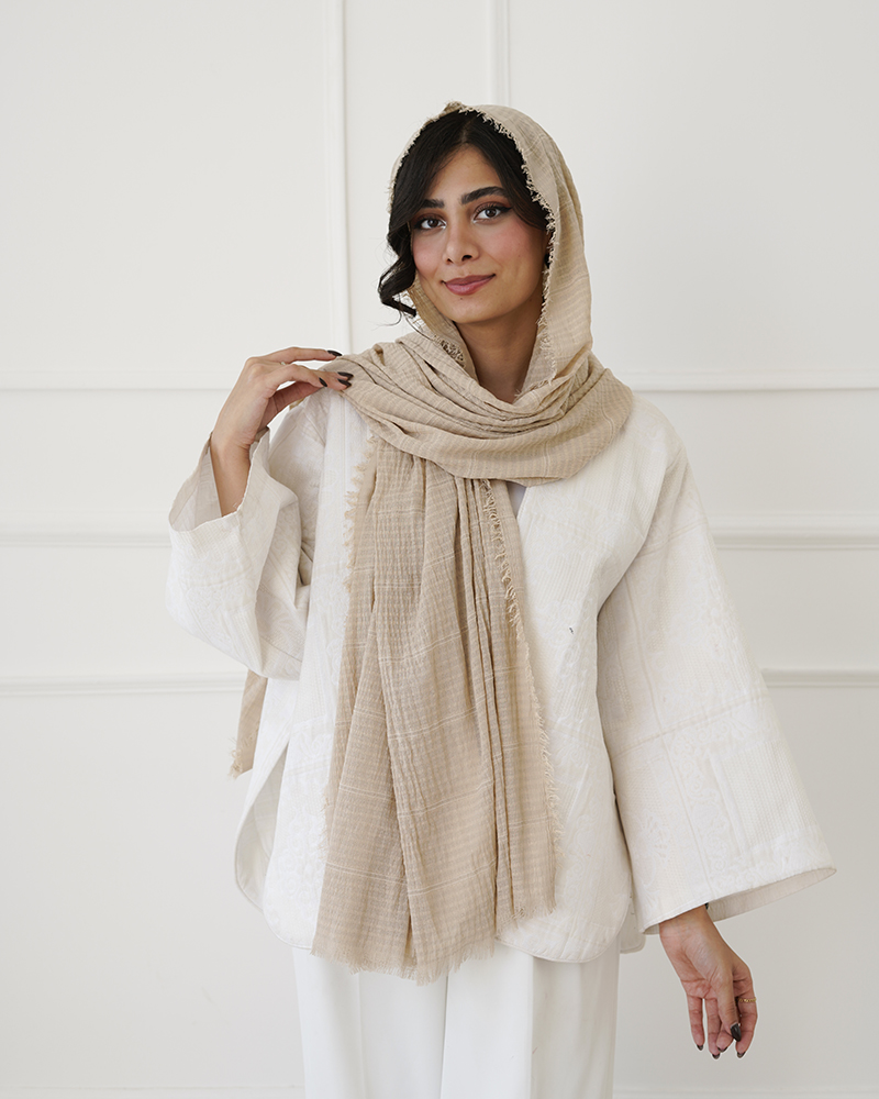- توضیحات محصول: جنس شال نخی می باشد. ابعاد شال 71*192 می باشد.