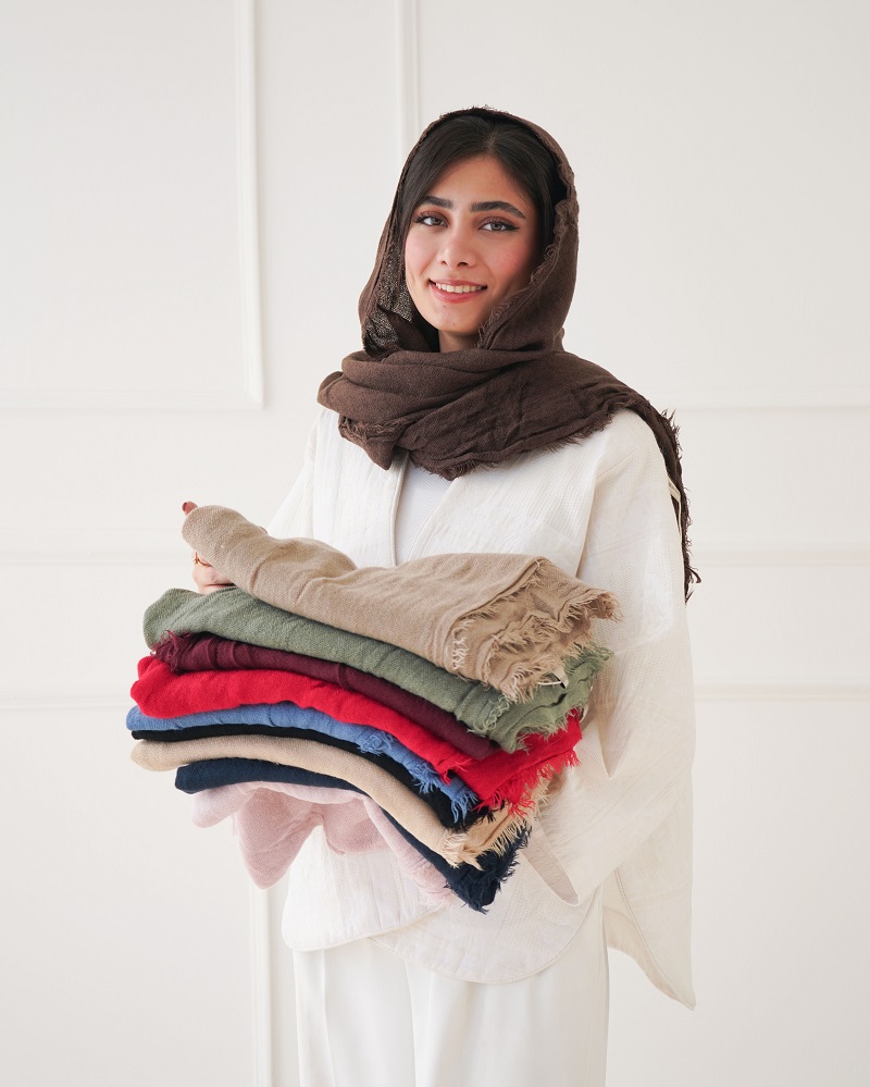 - توضیحات محصول: جنس شال کنفی حوله ای می باشد. ابعاد شال 63*200 می باشد.
