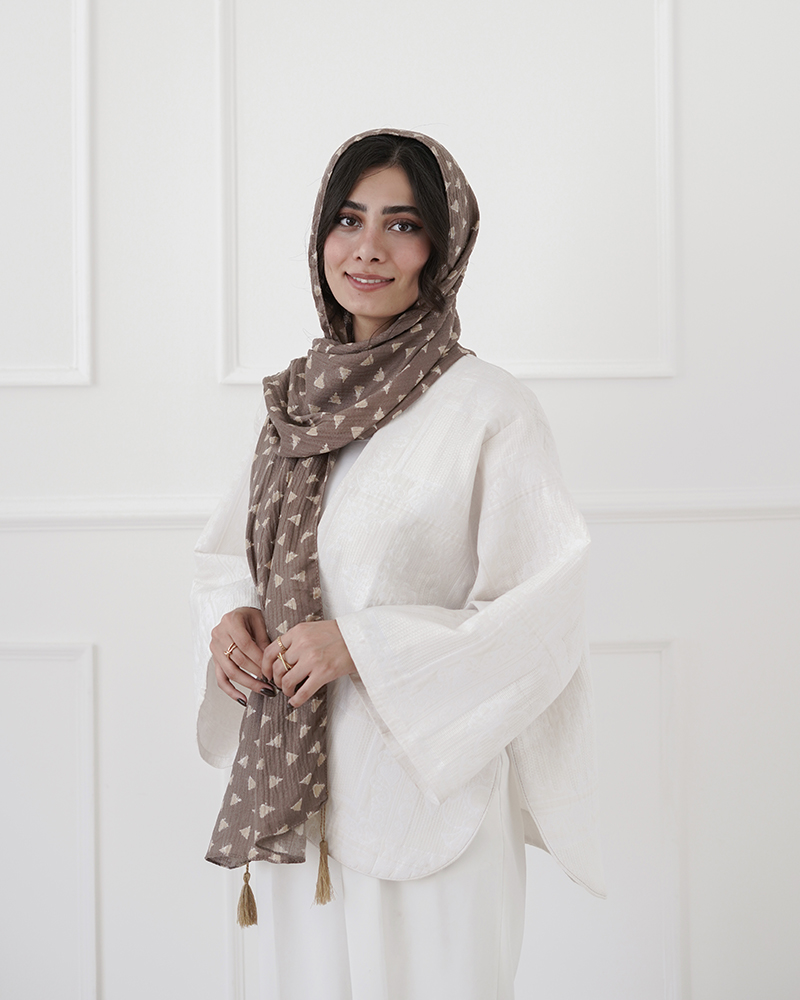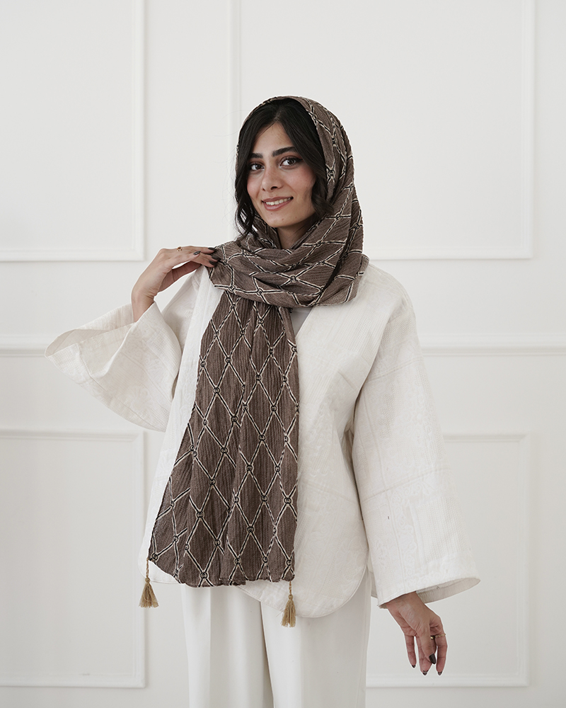 - توضیحات محصول: جنس شال نخی می باشد. ابعاد شال 176*52 است.