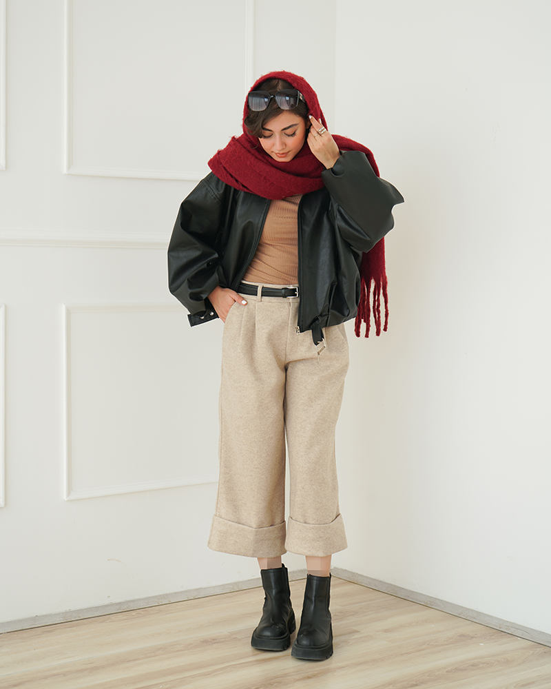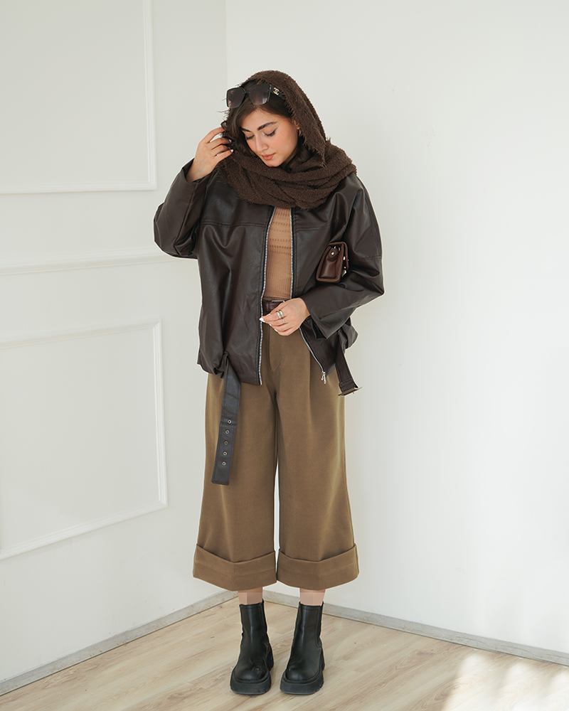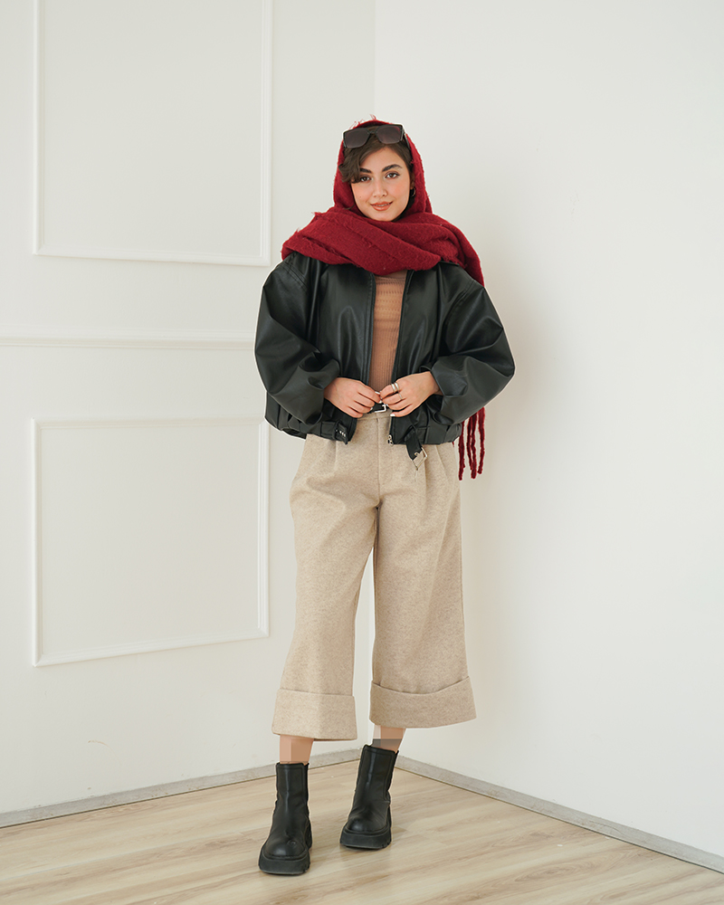 - توضیحات محصول: جنس شلوار فوتر می باشد. کمر شلوار پشت کشی و دکمه ای می باشد. تنخور شلوار واید لگ و دمپای شلوار پاکتی است. این محصول دارای پل کمربند و جیب های کاربردی است. شلوار با کشسانی بسیار بالا و نرم و لطیف مناسب استفاده روزمره می باشد.
