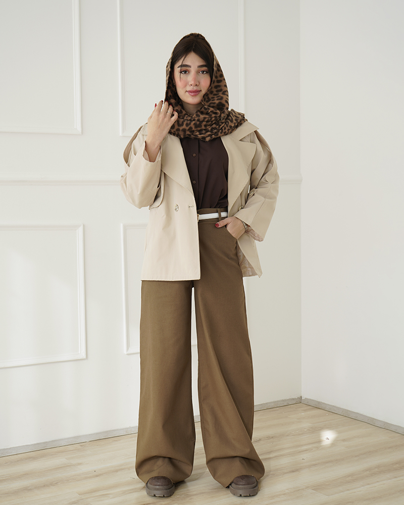 - توضیحات محصول: جنس شلوار کتان نخی می باشد. کمر شلوار دکمه ای و پشت کشی بوده و دارای پل کمربند می باشد. این محصول دارای دو جیب کاربردی بوده و تنخور آن بگ می باشد.